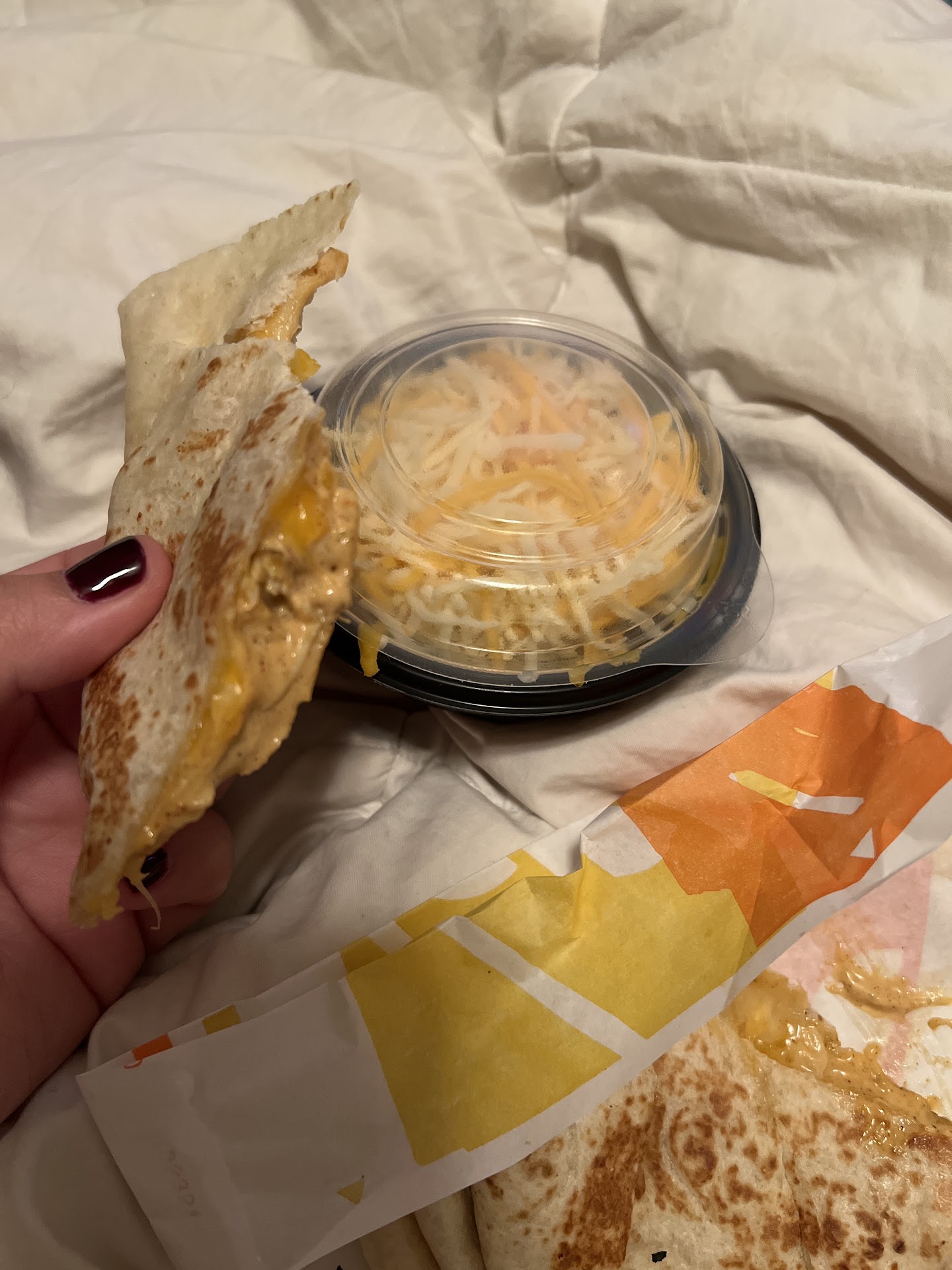 Read moreI like the new order terminals in theory. In practice the placement was crowded, the menu needs optimized, feels very corporate and dystopian when it could be presented as a utopian concept. At the very least it's obvious these terminals should be an alternative. Bring the big menu on the wall behind the counter back, it's just a few TV screens with a flashdrive in it. If you really feel like you need that many terminals mount them back to back rather then face to face so its something you walk upto rather then step into. Lighting was low, foods a bit bland, and all the art that I think is supposed to depict that quesadilla product, name escapes me, especially the one where it's the size of a coin in a mouth with an arrow pointing to it, they look like a gushers. You don't sell those... you shouldn't ether... I mean maybe like a gushers mountain dew but seriously whoever vets all this and signs off on it dropped the ball...