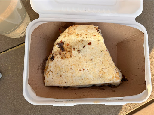 Beyond that, I’m thrilled with the value. That $5 taco was VERY filling. I also got the rib quesadilla (I never even really eat quesadillas or ribs, but I was feeling adventurous today) for $8, and it was delicious with a nice hint of sweetness to it.