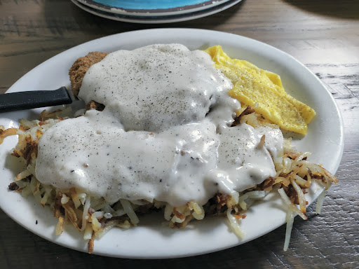 We had breakfast. I had the chicken fried steak with white gravy. Also hashbrowns and I asked for the white gravy to go on my hashbrowns. The chicken fried steak was flavorful and stayed crispy even with the gravy. I liked that. I also had some coffee which was pretty good coffee. Nice and strong.