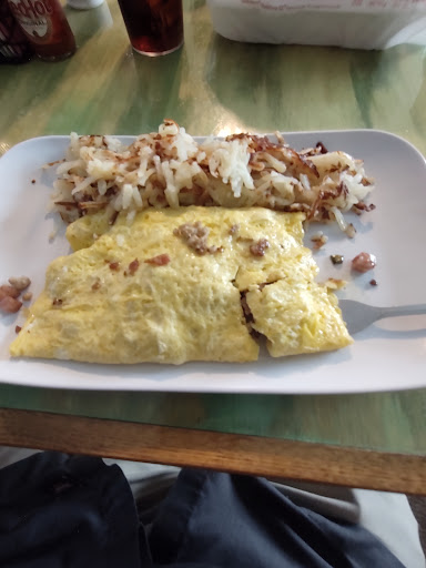The bad: I ordered a meatlovers omelette. It comes with hash browns and toast. I don't eat hash browns or toast (carbs). I told the waitress that I don't eat these and asked could I sub a little country gravy on the omelette instead. She told me, "No. They're very strict back there." No discount since I'm not getting the full meal. I'm used to that, but what is the harm of putting a spoonful of gravy on the omelette instead of the other stuff? She wanted to charge me $2.49 for a cup of gravy. Nope. And when my omelette came, hash browns on the plate. Ugh... The waitress apologized and said, "I wrote it down but they put them on there any way."