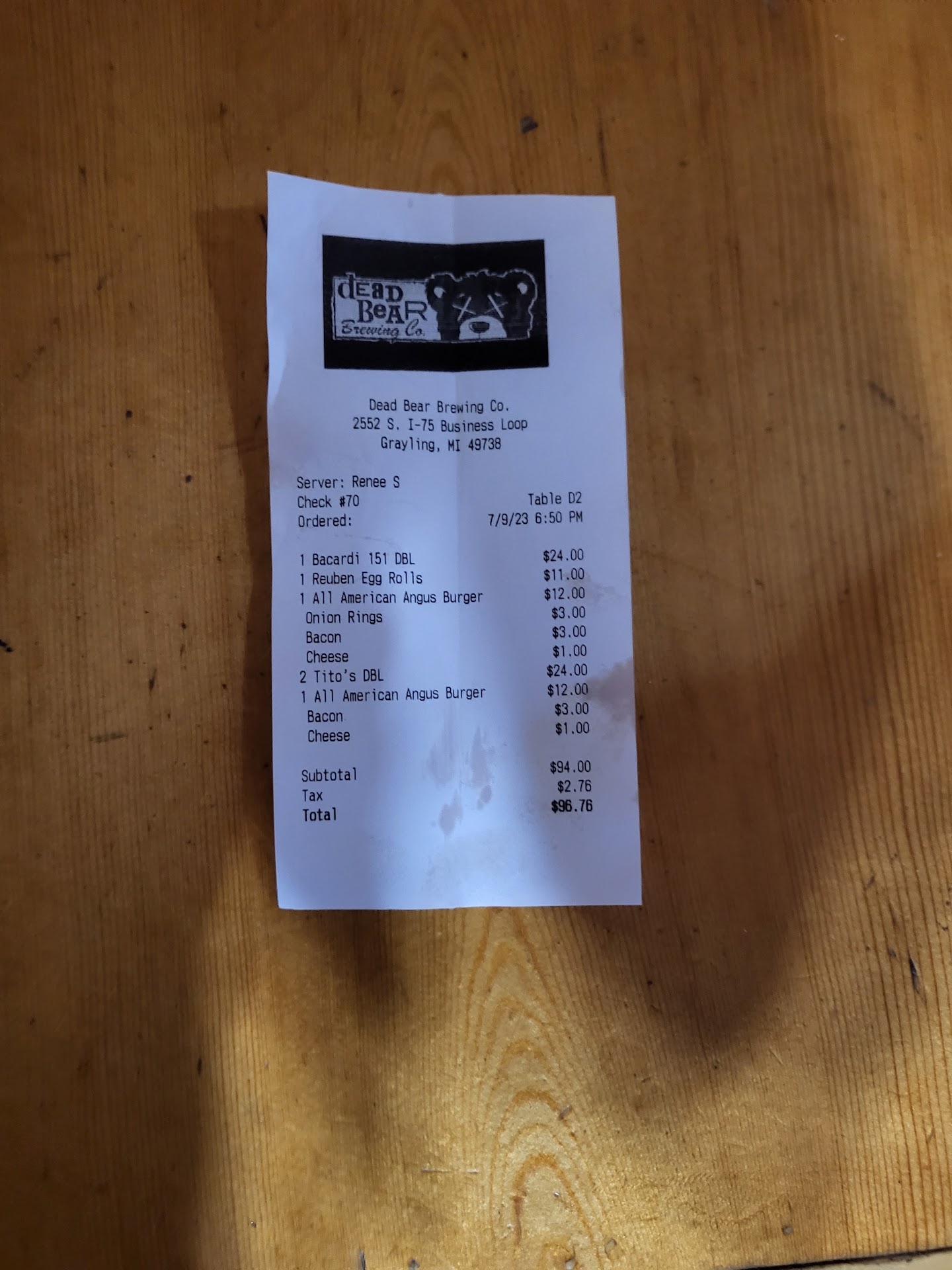 Read moreI only gave this a 1 star because of the way the management handled our questions on the bill. We ordered an appetizer, 2 burgers and 3 (alcoholic) drinks, and our bill before the tip $96.76 we were shocked that my 1 drink was $24 and the other 2 were $24 ridiculous. We knew what the prices were for the food to a point as for the drinks I didn't see any thing I wanted so I asked if I could have a Bacardi and coke double, and the waitress/server asked if I would like to have regular Bacardi or Bacardi 151, I hadn't had 151 for years so I ordered that and my friend ordered a Tiro's double w/ soda. The food and drinks came out in a timely fashion. The service, food, and drinks were great. I wasn't a fan of the small glasses used for our drinks, but I was surprised how my drink tasted so perfectly balanced with the size of the glass used. We finished our driner and asked for the bill. When we looked over the bill, we were shocked, so we questioned the prices on the drinks. Our server couldn't answer our questions, so she was kind enough to express our concerns and ask a manager about the charges. She came back and explained that my Bacardi 151 was a top shelf beverage. We expressed our concern that we should have been told that the 1 drink would cost $24 (our 2 burgers were less than that one drink). She apologized, and we knew it wasn't her fault entirely since she was newer to serving alcohol but the manager should have come over to the table to talk with us since she was new to possibly hear our concerns. It just would have been the right thing to do. Especially after we said we wouldn't come back. The restaurant is in a small town, and I was with a local, so why wouldn't the management at least try to make an effort. It's not that I wanted anything off the bill it was more that our concerns weren't heard. Those concerns being the newer server not knowingly offering a patron a $24 drink, I take responsibility for ordering off the drink menu, but damn never would I have thought any double shot and soda would have been more...