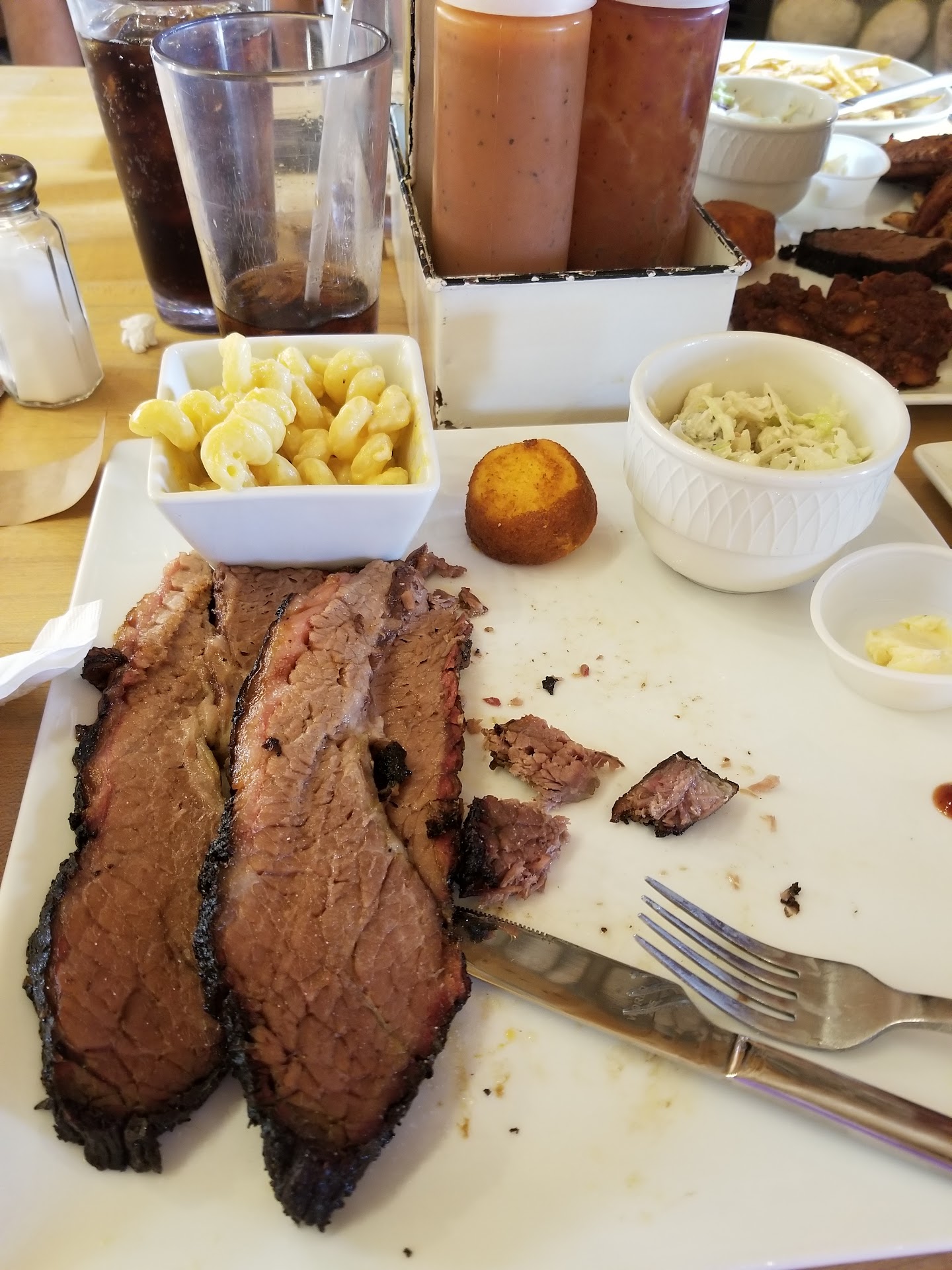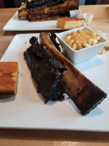 The only thing what was good was the garlic potato’s and the lobster mac. Potato’s were perfect and garlicky. They were great. Brisket was tasteless and dry, ribs had a nice bark but the bark didn’t taste like anything and they were dry. The potato salad offends real potato salad because calling it potato salad is an absolute joke. Cornbread was tasteless, dry, and purely disappointing. Don’t even get me started with the sauces. The regular bbq was mid. The spicy one was ok. The honey mustard sucked and their 4th sauce get this….its ketchup. This place is nice on the inside and nice in the outside but the food. The sauces. And the service was some of the most embarrassing things I’ve ever seen. Won’t ever stop here again and I don’t recommend it. Save yourself the 80 dollars and the time and go stop across the street at spikes and get yourself...
