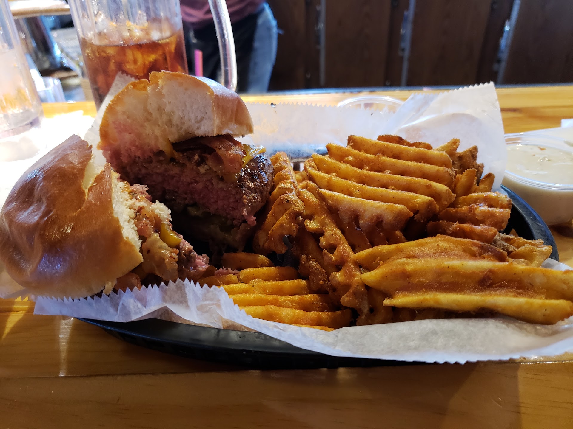 Read moreAs a fellow food establishment owner, I couldn't wait to leave a review tonight! I absolutely loved everything about this restaurant/bar. The atmosphere was iconic. From the names carved into all the booths and bathroom stalls, to the layers and layers of epoxy on all of the tables, you could tell this place held some awesome stories! The hostess was organized and professional - even tho the place was hopin! Our waitress was prompt and brought us drinks right away, she was honest about the menu - told us everything was delicious- except the Cesar salad sucked. I LOVE when the servers are honest! I got a side salad with ranch and a turkey Reuben sandwich. The salad was super cold, crispy, all veggies were fresh and the ranch was on point! The Ruben was perfectly grilled, with the perfect amount of slaw/dressing and tender turkey. The menu was simple, American flare, nothing fancy, but it was absolutely delicious! Definitely hit the spot after camping the past few days. The cherry on top - for me- was the fact that they played Incubus on the speakers. The music, the vibe, the staff, the food - the overall ambience was FanFreakingTastic!! Definitely recommend a trip to Grayling for this place...