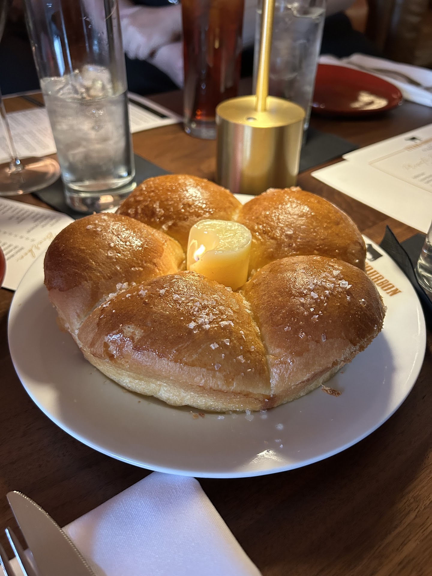 The one highlight of the evening was the bread. The bread was presented as a “tear and share” with the butter molded into a candle, somewhat like a votive candle. The wick was lit and as the flame burnt down your butter was warm and soft. It was unique, and we enjoyed the bread.