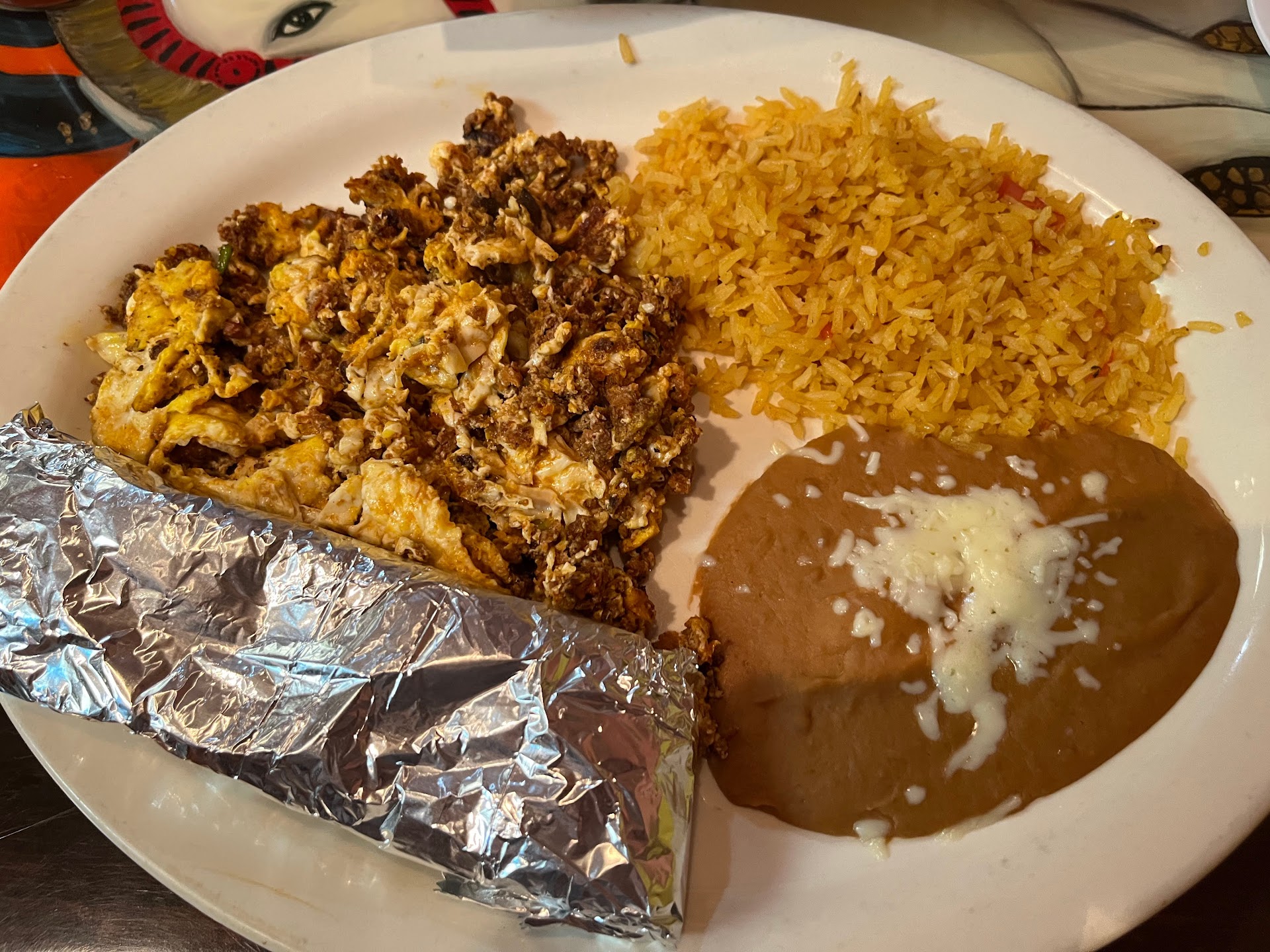 Now, for the food: awesome! My brother is insanely picky so he ordered a ribeye plate - which is a super thin slice of beef with soft tortillas and accessories. He felt there was a bit more fat/gristle on his meat than he expected. My mom ordered the chimichanga and really enjoyed it. I opted for the huevos con chorizo and destroyed the food on my plate. Beans and rice were good, but man those eggs and chorizo were super yummy! The soft tortillas tasted fresh, too.