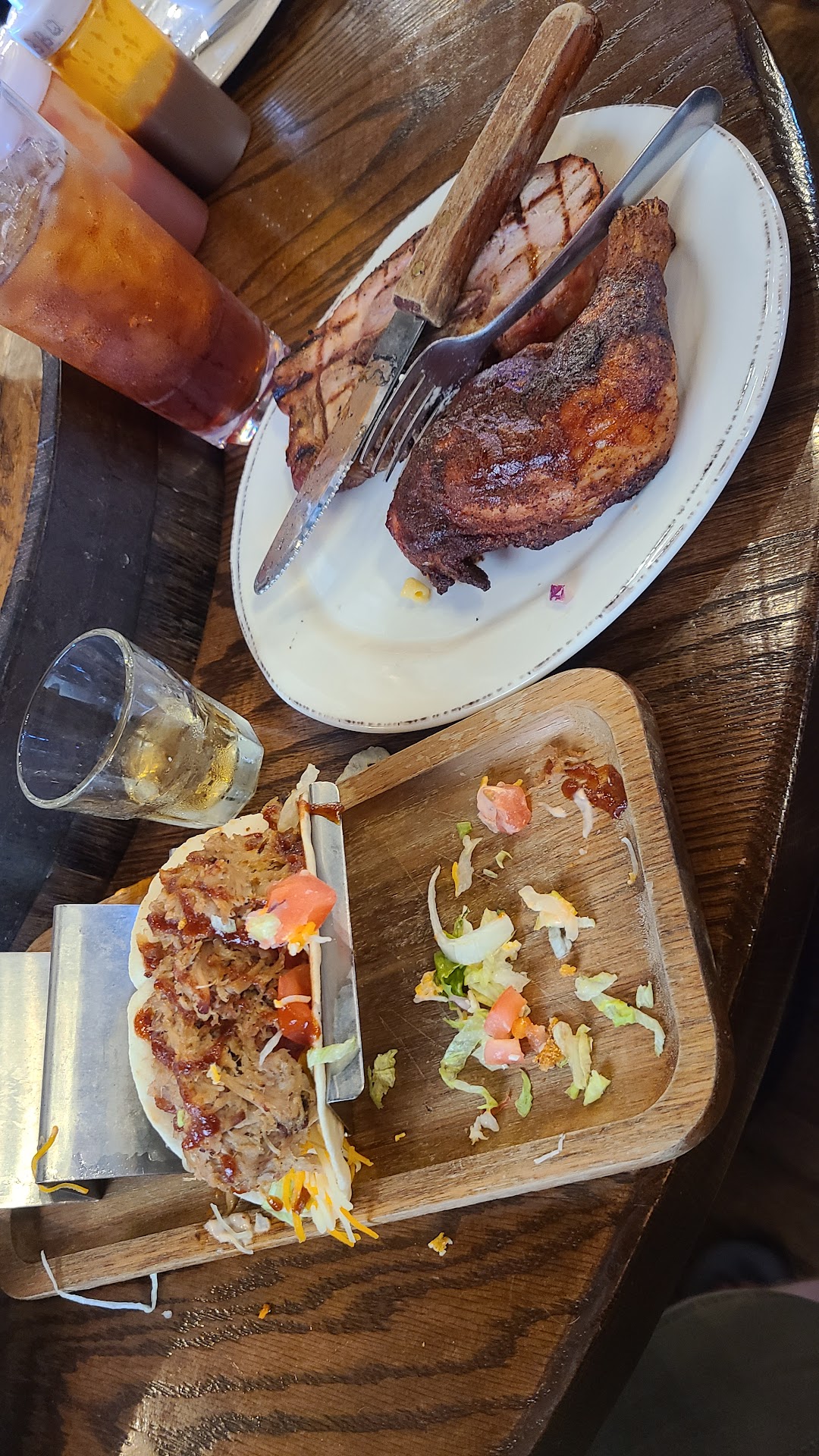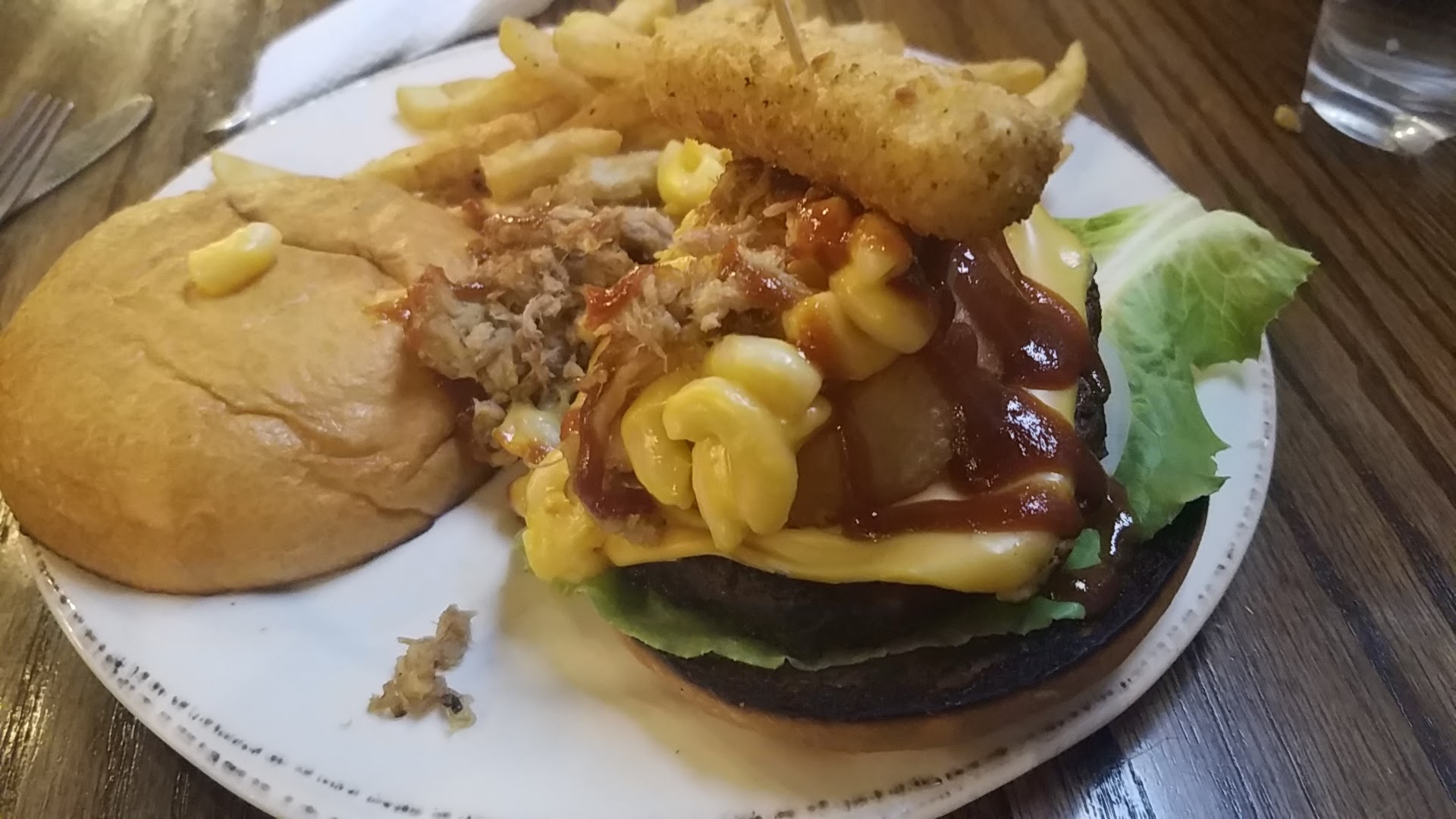Most recently though, our waitress just guessed. It wasn't super busy so I'm not sure why she would do that. My question was in regard to the Southern Smoke Burger. She said "it's a big burger" so while we were deciding I hopped on Google to see if there were any photos of that item and came across what looked like a really big sandwich piled with bbq. When she returned, I showed her that photo and asked if that was the Southern smoke burger and she said she thought it was. Great! I want that! Well it turns out that that photo was not of this particular burger. What I received was much smaller. I didnt complain as what I received did have the mozz sticks and a spoonful of mac n cheese. But being that this burger was $16 I really expected more. It was good, I'm not disappointed in that; but I wished I had saved $5 and got the Chicken Sandwich or another burger instead. What irritated me was that the waitress guessed instead of getting me the answer. What made me even more upset was that a bit after the waitress brought the check and asked if we needed a box, we decided that we did need a box after all. I guess because we'd already paid (I left about 22% tip) the waitress was done with us. I couldn't get her attention to let her know that we changed our minds and did indeed need a box. Fortunately another waitress obliged. We will be back as I like the place, they have good food and the owner who we met on our first trip was very friendly. I only wish that this particular waitress would work harder to improve her people skills. I noticed on other reviews that a waitress was less than friendly. Unfortunately I cannot remember her name. Pictured first is the southern smoke burger: a good burger but not a big burger as described by our waitress. The second picture is what I thought I would be getting. If this item is not on the menu, I wish they would either remove it or tell the waitstaff what that actually is so that others aren't disappointed like I was. Btw the chicken strips were very good! ...