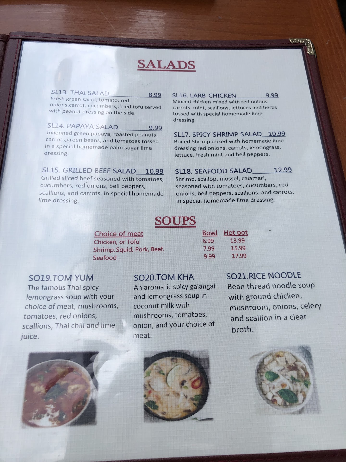 Ā Ā Ā Read morePlease read this before go there,i had so many thai food before, but this is THE worst thai food i had, already failed at service, then i found A BUG IN MY TOM YUM SOUP! TOM YUCK SOUP MORE LIKE, and they didnt even say sorry! Grab the food and walked away, then my wife had red curry, barely any flavors besides just spicy, seems like they add water with some coconut milk, barely any curry taste too, And i had pad thai noodle, but the taste was so heavy to the point all i taste was SOUR. And the ice water was sitting there for so long when they first gave to us, you can see the ice was almost done melting, just tiny bit. DO A...