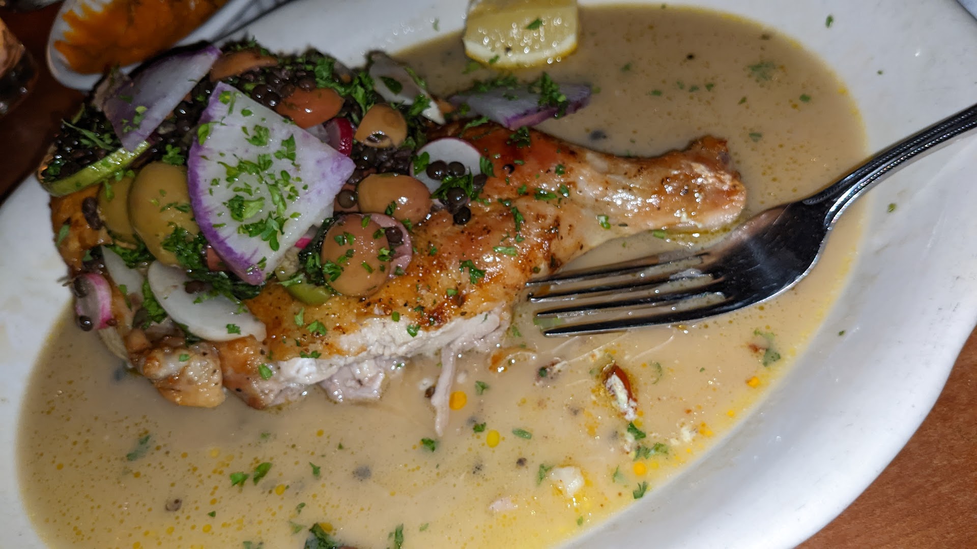 Read moreWe booked a table, and that helped skipping the long line of enthusiastic customers. However, while we waited to get the table, we saw some great looking chicken pass by, and we (i.e., the three grown ups) were already sold by the perfectly crisped skin. Two of us decided to share the coppa as a starter, and the kids happily joined: if I have a regret for to he dinner - along with not having any room for the dessert - is that we only ordered one, as it was AMAZING. We live in Boston but we are from Italy and we are often disappointed by the cold cuts in this country, even the imported one. However, the locally made coppa tonight had an authentic taste, and we are quite upset that this is the only place to find it aside from Italy. To accompany our meal, we ordered a French Orange wine (imported by Bon Raisin), which arrived a bit warm, but became a nice discovery after fifteen minutes in the cooler. It was great with our chicken, which kept all the promises: I didn't really like the raw kale leaves, but I loved the roasted potatoes and the chicken itself, which was perfectly cooked and juicy. My two kids (8 and 12) got a cheeseburger: it was quite or them, but they were pretty satisfied as they managed to finish it (we pretend it was without the help of my husband, who praised the burger meat quality for a while).
