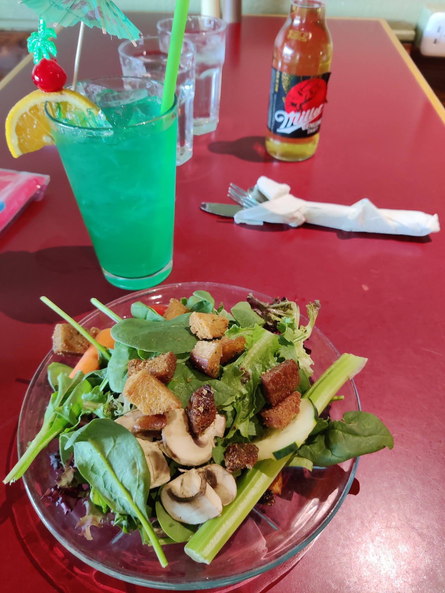 We had the special which was steak and spaghetti, a bit of a weird combination but let’s try it. We ordered different doneness of steak, but they both came out the same, not the end of the world but it was noticeable. The steak was not terrible, but it needed salt. The spaghetti was slightly Al Dente, but the meat sauce was good. The green beans were also mushy, and canned. The garlic toast was just from a frozen bag, reheated.