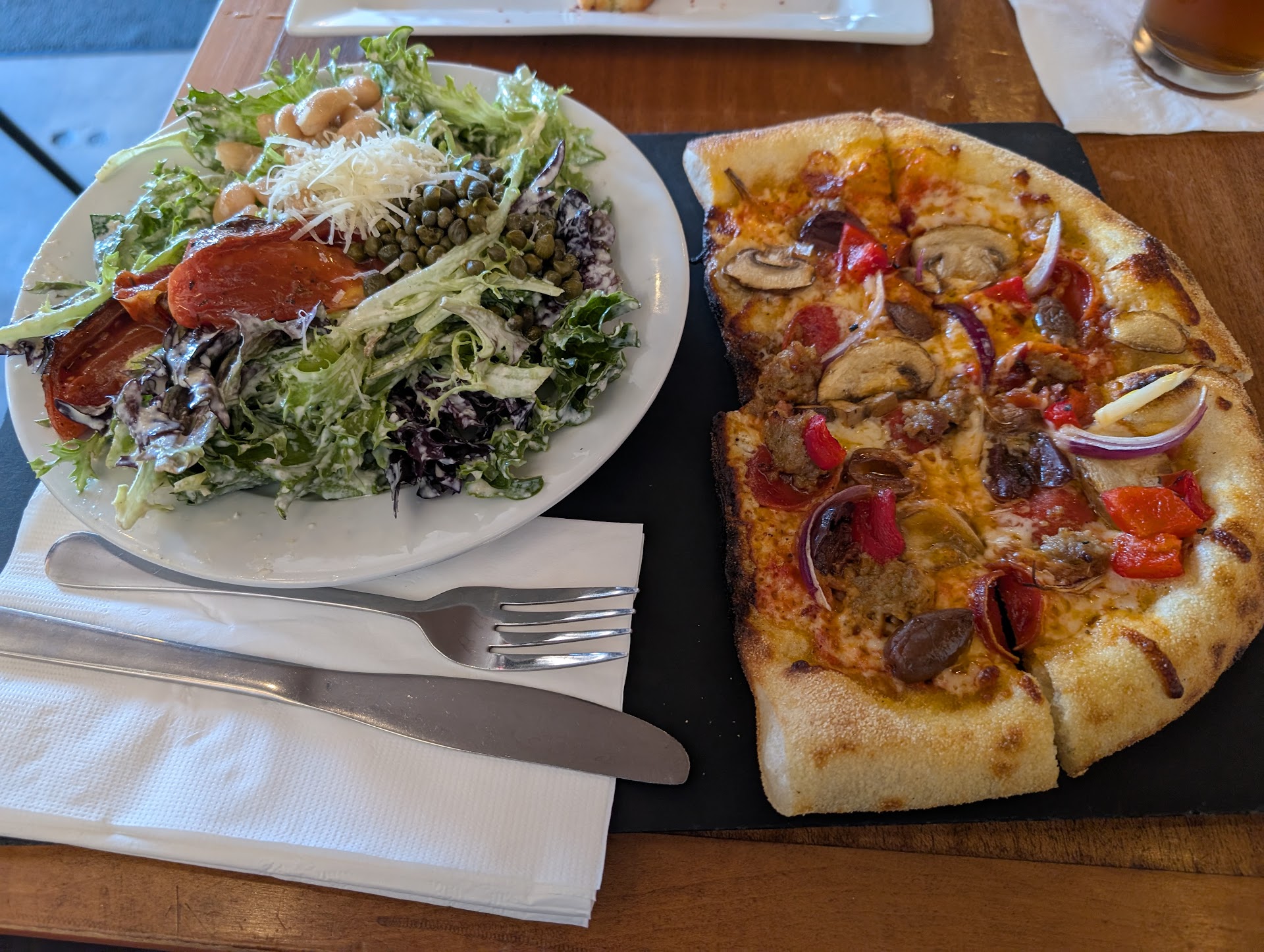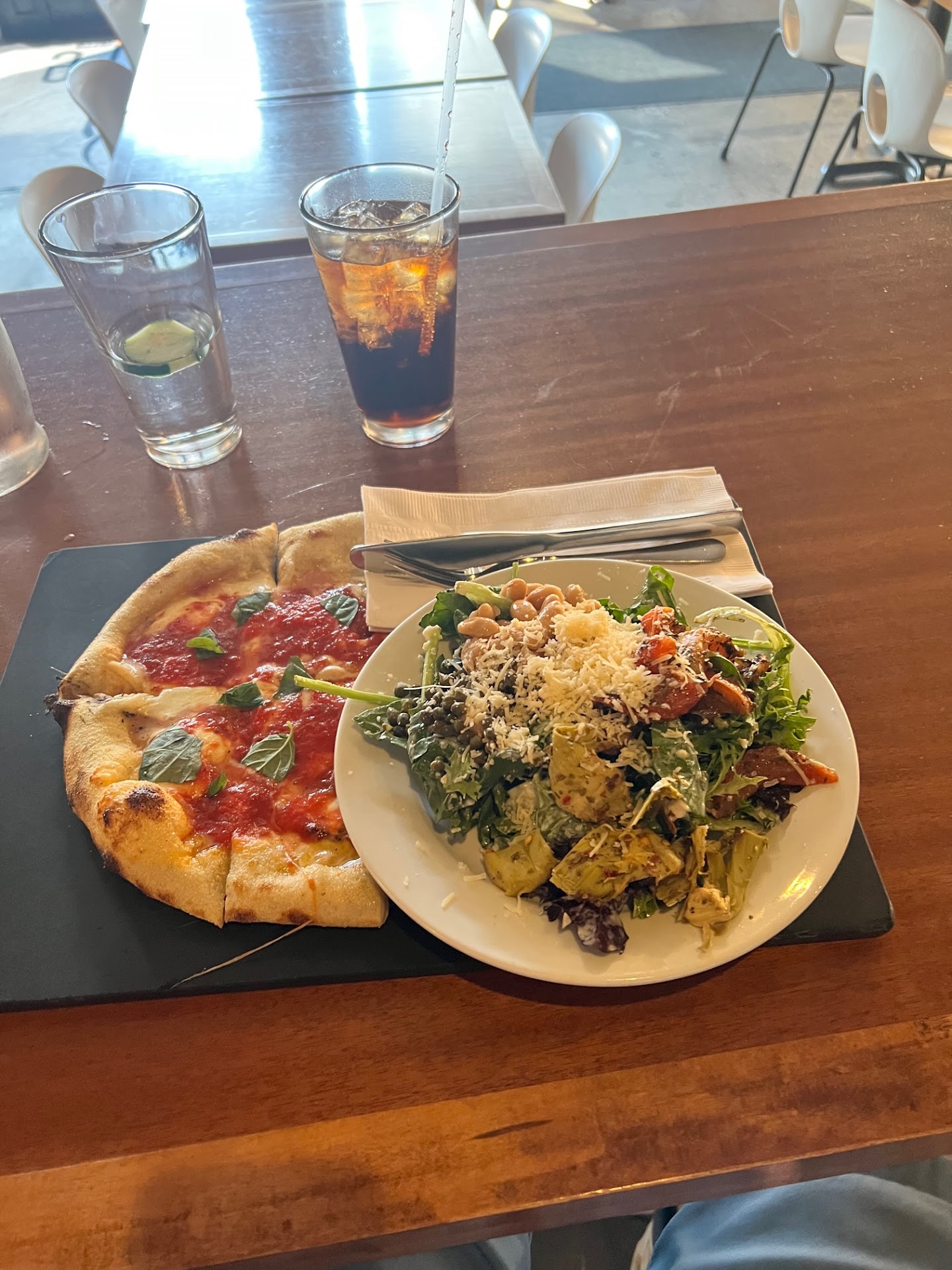 Read moreI'm definitely disappointed. It was rated pretty high on Google reviews, but I was not impressed. The service took a long time to get started, and there were only a few people in there to be served. (It didn't really pick up from there.) I ate almost my entire meal before getting someone to come refill my drink. Speaking of meals... the pizza was not in any way delicious. The crust was a letdown, too soggy in the middle, and lacked the buttery, chewy flavor-texture combo a good oven fired pizza should have. They way overdid the toppings, which likely accounted for the soggy crust. It struck me as a place that tried to get outside the box with new flavors but went a few steps too far. The atmosphere was lacking the inviting feel expected for a pizza shop like this. The "Mod pizza" environment just leaves it feeling plastic and false. Definitely recommend sprucing it up a bit with a more local and authentic feel. I feel a bit bad to leave a tough review, but I truly feel it...