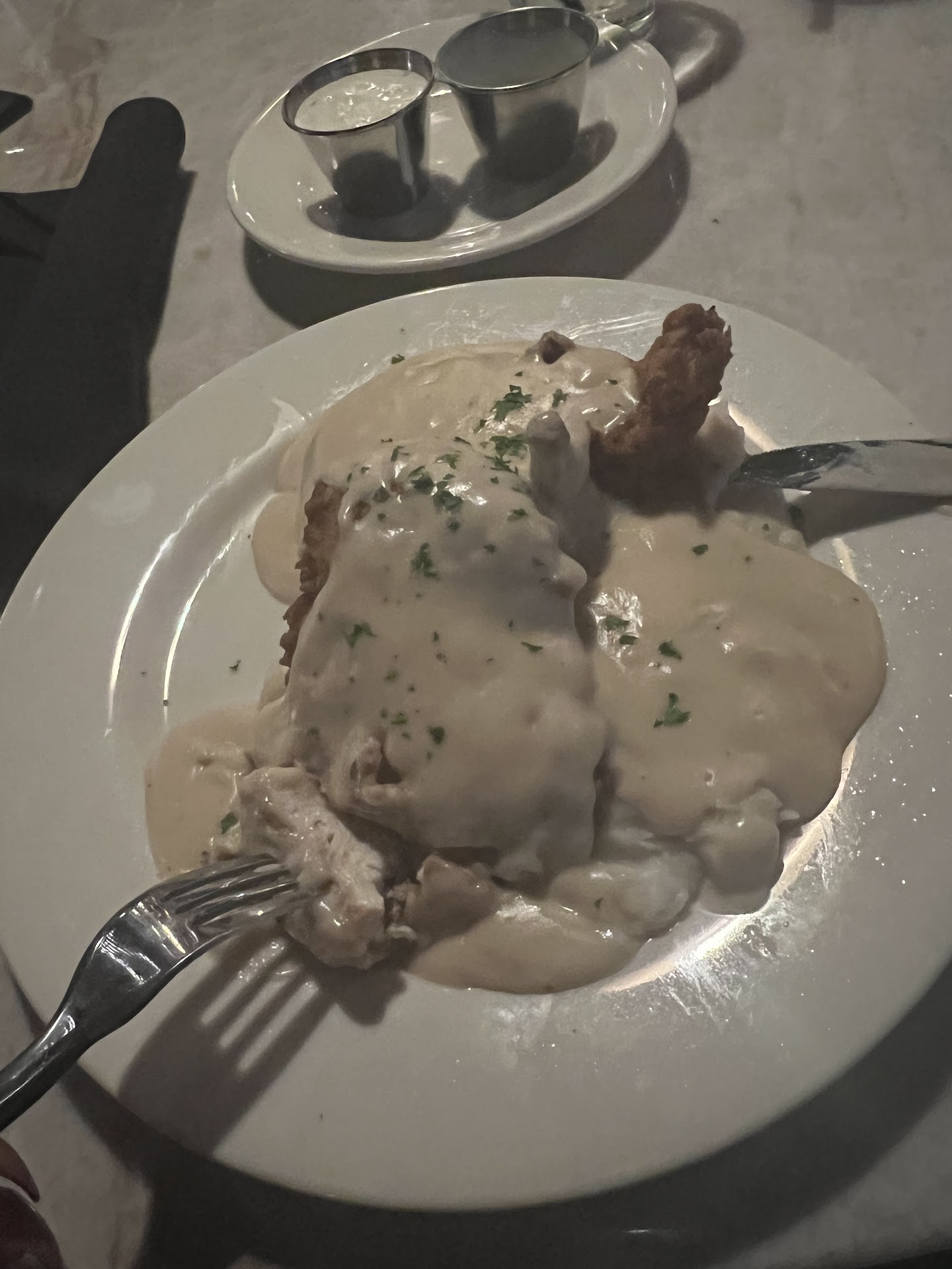 Read moreI've had dinner here twice now. The first time, I had the salmon, a side salad, and fresh spinach. We shared the fried shrimp appetizer. Loved the shrimp, but the fries that accompanied it were the same awful Sysco precut and preseasoned ones that Applebee's serves, and i always avoid there. My salmon was way overcooked, and the spinach was so oversalted that it was inedible. There was so much (not fresh) salad on the plate that touching it with my fork caused a large part of it to spill onto the table, making a big mess. Our server was great, so we left a generous tip. My second visit was for my adult son's birthday. We ordered the shrimp appetizer again but didn't touch the Applebee's fries. My side caesar salad had easily enough dressing on it for 5 salads, and the romaine had seen far better days. My pork chop was good, but the fresh green beans hadn't been properly trimmed, making them look very unappealing. Also, I asked specifically for No Pepper and saw the waitress make that note on our ticket. Instead, they arrived covered with a strange "seasoning combo" that included a whopping portion of black pepper. It isn't that I dislike pepper; it's that very much of it causes me to become ill. And it's not an allergy but a permanent side effect of chemotherapy. Don't get me wrong. I WANT to frequent your restaurant, and Great Falls needs an upscale place like yours. I love that you have a good Sauvignon Blanc by the glass! And I wanted to gave the option of a second glass recently, but our service was so rushed, I had barely finished my first glass when dinner was over! Pls, you need to make some adjustments. Pls, pls slow down the courses. When I spend $135 for 2 of us, I'd like to relax a bit and enjoy it. Pls stop seasoning fresh vegetables within an inch of their lives; that's a task for the individual diner at her table. And pls serve homemade fries, thus making them available without heavy seasonings. Last, how about smaller, fresher salads? I will return to your establishment because the atmosphere is very inviting, and you serve good wine by the glass, but I'd appreciate some needed improvements being made. Thank you...