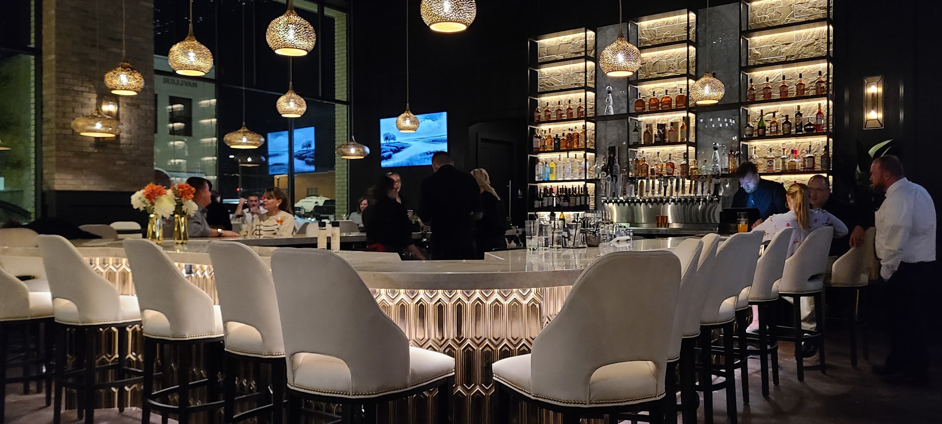 We arrived on time for our reservations and were seated promptly. Seating was beautiful and very comfortable. Absolutely love the open window views of downtown via full-surround windows. Very classily decorated space. Lighting was beautiful, romantic, and just right. My husband and I would agree noise level was above average but it wasn't off-putting for us personally- but it was quite noticeable.
