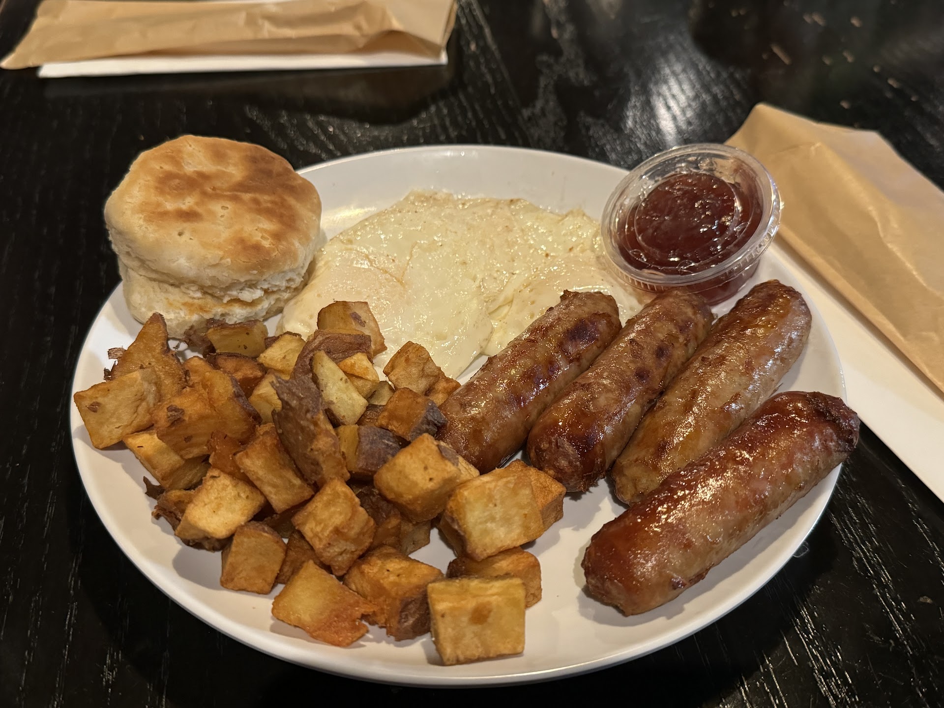 Read moreThis is the second time we’ve eaten here. The first time everything was super fresh, healthy tasting, and hot. The lady serving us was extremely attentive and helpful. We had a lot of questions and she answered them all. She seemed genuinely interested in our experience. Today I would say the food was above average and the server was polite enough, but definitely not to the level of the last lady. The sausages were a good size and those and the eggs were served hot. The biscuit and jam was great too. The potatoes had been on keep warm for a while and were a little old so that was a little disappointing but I understand everything can’t be perfect every time. Solid 4 stars today. Our last experience was 5 stars. We...