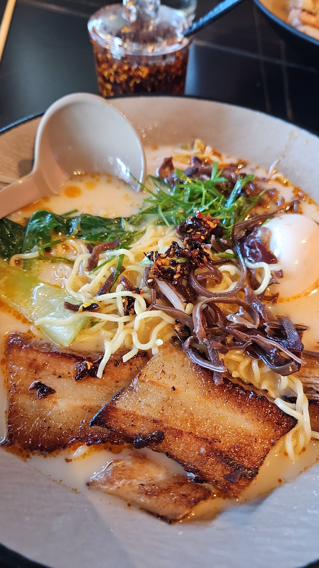 Read moreDecor is standout fantastic, and the dining experience is by far the best of Greeley. Food and service were both great. Our first time dining, they were short staffed a cook, bartender, and two servers, but our service was neither rushed nor delayed. A+++ My perfect tonkotsu ramen is santouka in mitsuwa markets... not even in this state, but Bowl Izakaya is still in the top 5 ever. Greeley has never seen ramen like this. Better than Kujira in FoCo. I got regular tonkotsu and my Mexican wife got the spicy version "hot"... it's legit spicy. I even gave her the rest of my broth after finishing my bowl to tame it down a touch. The pork slices were as good as it gets. We also got chicken karaage, gyoza, chicken tender yakitori futatsu, and a Unagi sushi from the sushi bar. Unagi cuts were top-notch, and sauce was correct, recommended. Karaage was delicious with a kewpie based sauce, recommended. Yakitori was surprisingly spicy, with a Japanese tajin dry rub thing going on, properly made over binchotan, recommended. I'm a dumpling slut, so I still recommended them, but they are not the stuck together from the starch handmade ones... but still prepared from frozen very well. Despite no bartender, two of the staff knew how to make drinks, well. My wife got a standard margarita and tried a Midori sour for the first time. Both were great. Even finished with a blackberry lemonade, also great. Many more items and service to try, I will...