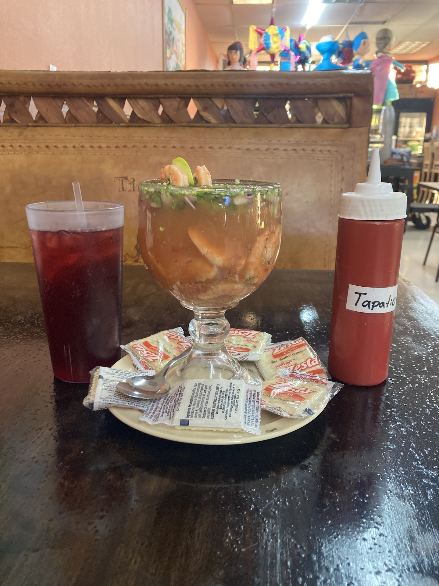 Great, authentic Mexican food inside of a meat market. The salsa for the chips was very savory and not too spicy and the chips themselves were crisp to perfection. I ordered the shrimp cocktail, the price was average for the size and there was a decent amount of shrimp. The accompanying red onions, cilantro, tomatoes and avocado were all fresh in the soup which wasn’t too thick with Clamato like in other places (not that it’s a bad thing). A little bit of Tapatio and saltines and I was in Mexican shrimp cocktail heaven! If you’re craving real Mexican food, this place...