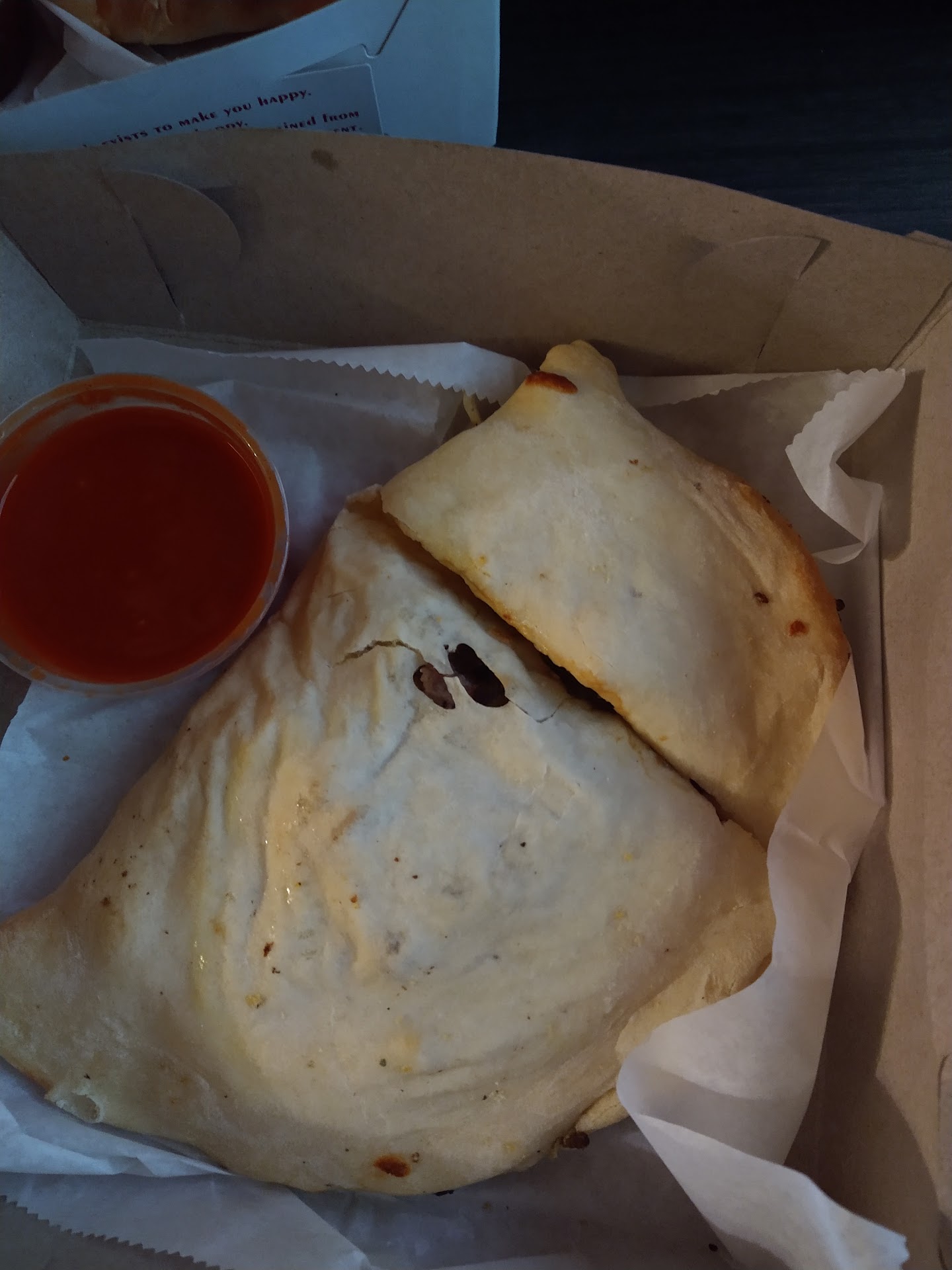 Ā Ā Ā Read moreThis place is horrifying. I went there for the first time 2days ago after seeing a good review.(didn't look in the reviews but now I have.) The time definitely wasn't right so that is true. I am patient but not even 2 mins of standing in there waiting I see the guy take the spatula and scrap it against the bottom of the table a couple of times and then he does it once on top but on the side of the table and right below that is the trash can. And I thought dang he's putting alot of work into that before washing it(not knowing the layout of the place). And immediately a girl comes by throws a calzone in a box and BAM he chops it in half with the spatula he'd been scapping all over the table. Absolutely disgusting. And after that watching how things were run here only got worse. Not only does everyone have long wild hair but there's no dress code at all to work here one of the girls was running around in short shorts youd wear around the house and flip flops in the dang kitchen. They were nice but nothing is clean about this place. And they use that same spatula to cut every single calzone. Hope no one runs into an allergic reaction with this place but if so...