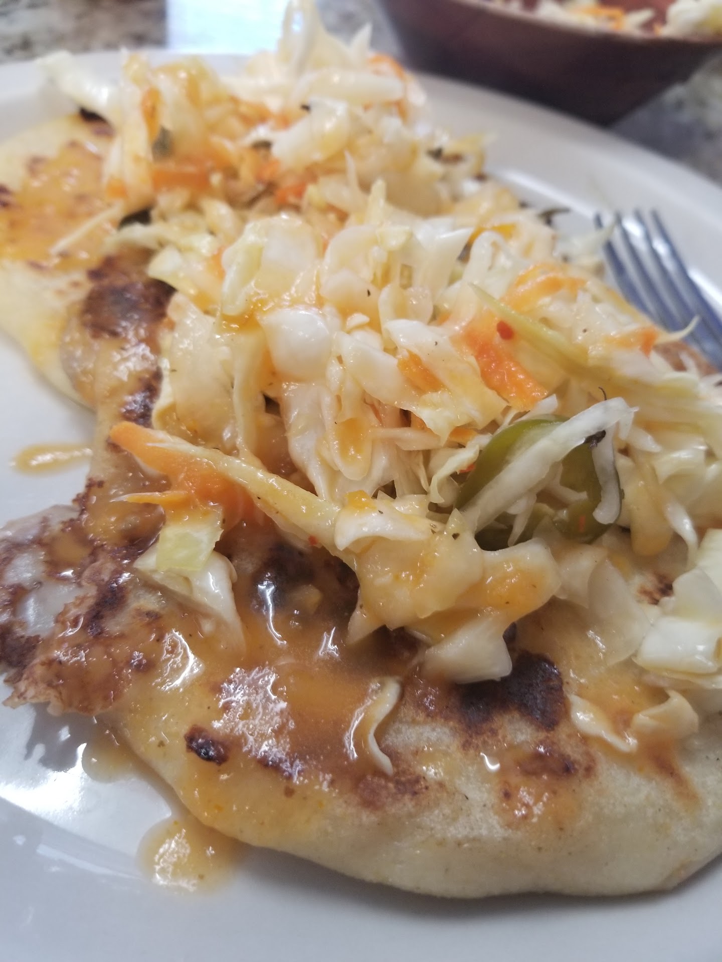 We both had 2 papusas...I had bean and cheese plus pork and cheese. They were very moist and the cabbage was good and fresh. The sauce was tasty also.