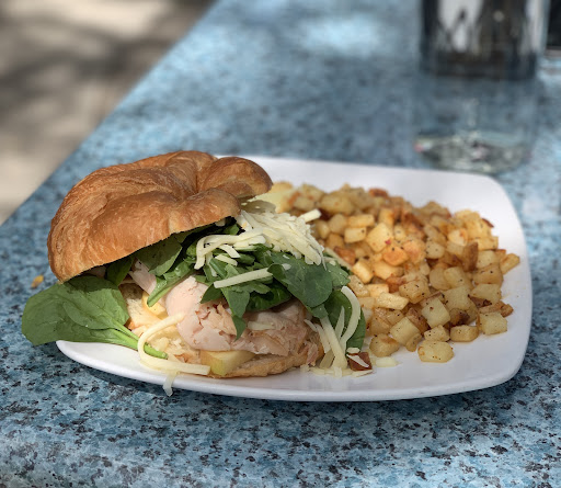 Read moreEpic Egg is a table service breakfast and lunch restaurant with indoor/outdoor seating. They serve a variety of entrees, but have more breakfast type options than lunch. Breakfast categories include, pancakes, waffles, french toast, benedicts, skillets and omelets. The lunch menu has 4 burger varieties, 3 salad options and 8 sandwiches. A surprisingly high percentage of their entrees have a Gluten-free option (add’l charge). On the vegan front, they have one breakfast skillet and a “very vegan burger”. Menu also includes day drinks (mimosas). The front entrance is a double door with good room and is level with the parking area, they do not have a door opener for those with limited mobility. I ordered the roasted turkey and swiss ($9.50). It was tasty, but not quite as hot as I would have predicted. The cheese wasn’t melted, but sprinkled inside. The flavor was very good. The turkey, apple and croissant mixed well together flavor-wise. I found the portion size to be adequate for the price. The staff was very friendly and attentive. Pro tip, come by for Kids eat free on Saturdays (1 free kids meal with each adult entree). Please “like” this review if it helped...