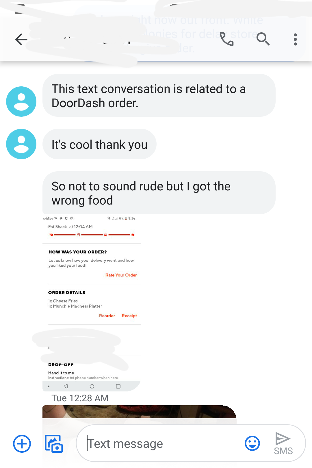 When I inquired my delivery person about it, he stated NOBODY TOLD HIM, they just "Handed me the food and told me to go."