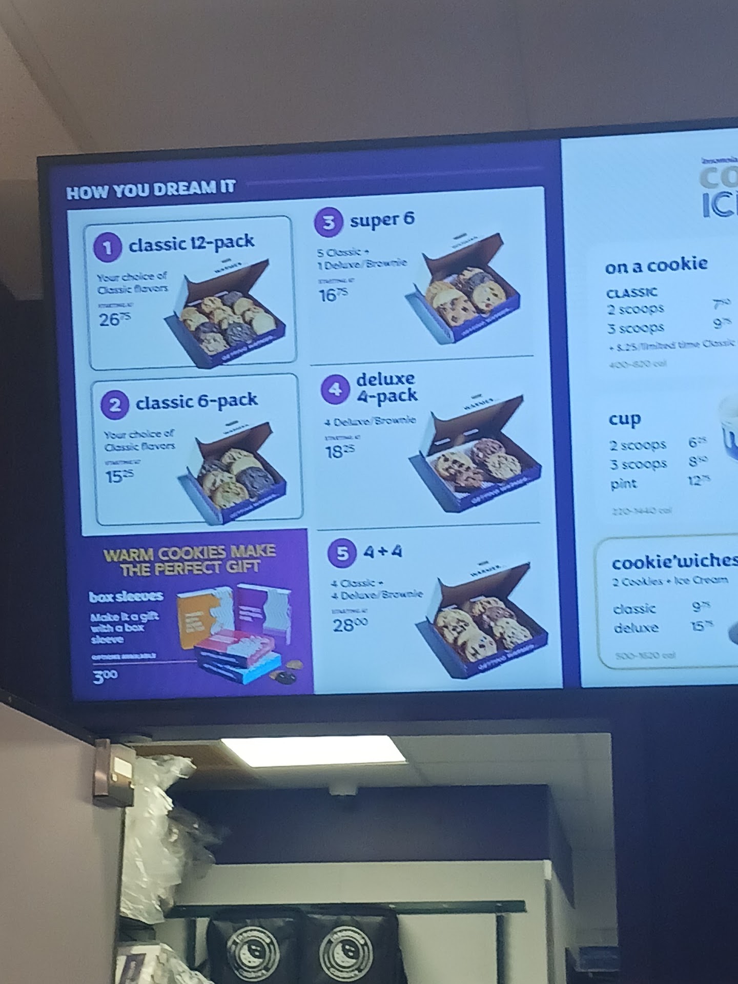 Ā Ā Ā Read moreI ordered two 12 pack boxes of cookies. They only delivered one, I called and asked for them to get the other box to me the girl was nice, and said that sheād send the driver out with the second box. Itās almost 11 oāclock at night, I have a sign on my door that says āDO NOT RING DOORBELL, IT WILL WAKE THE BABY.ā They ring the door bell anyways. So now I have the second box of cookies that costed 85$ total for both, plus tip, delivery fee etc. and shouldāve been here two hours ago, & that I had to hunt down and ask to be delivered to me or a refund be placed and a WIDE AWAKE BABY! Great customer...