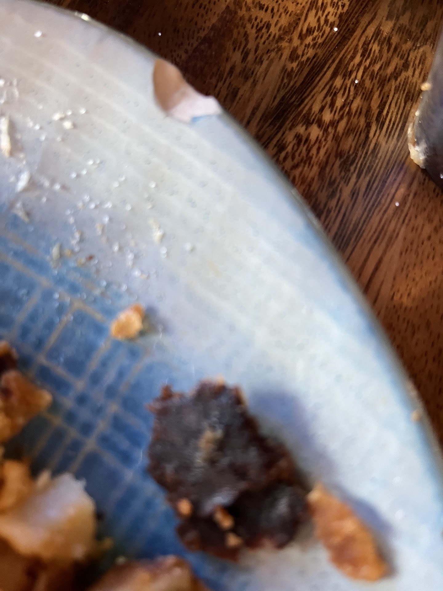 My meal was served on a chipped plate.
