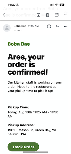 Read moreToday, I placed an order at Boba Bae through their online system at 11:09 AM, and the estimated pickup time provided was between 11:20 AM and 11:30 AM. However, about 10 minutes later, they updated the pickup time to 11:50 AM - 11:55 AM, which was inconvenient as it required over 45 minutes for preparation, far longer than I had initially expected.
