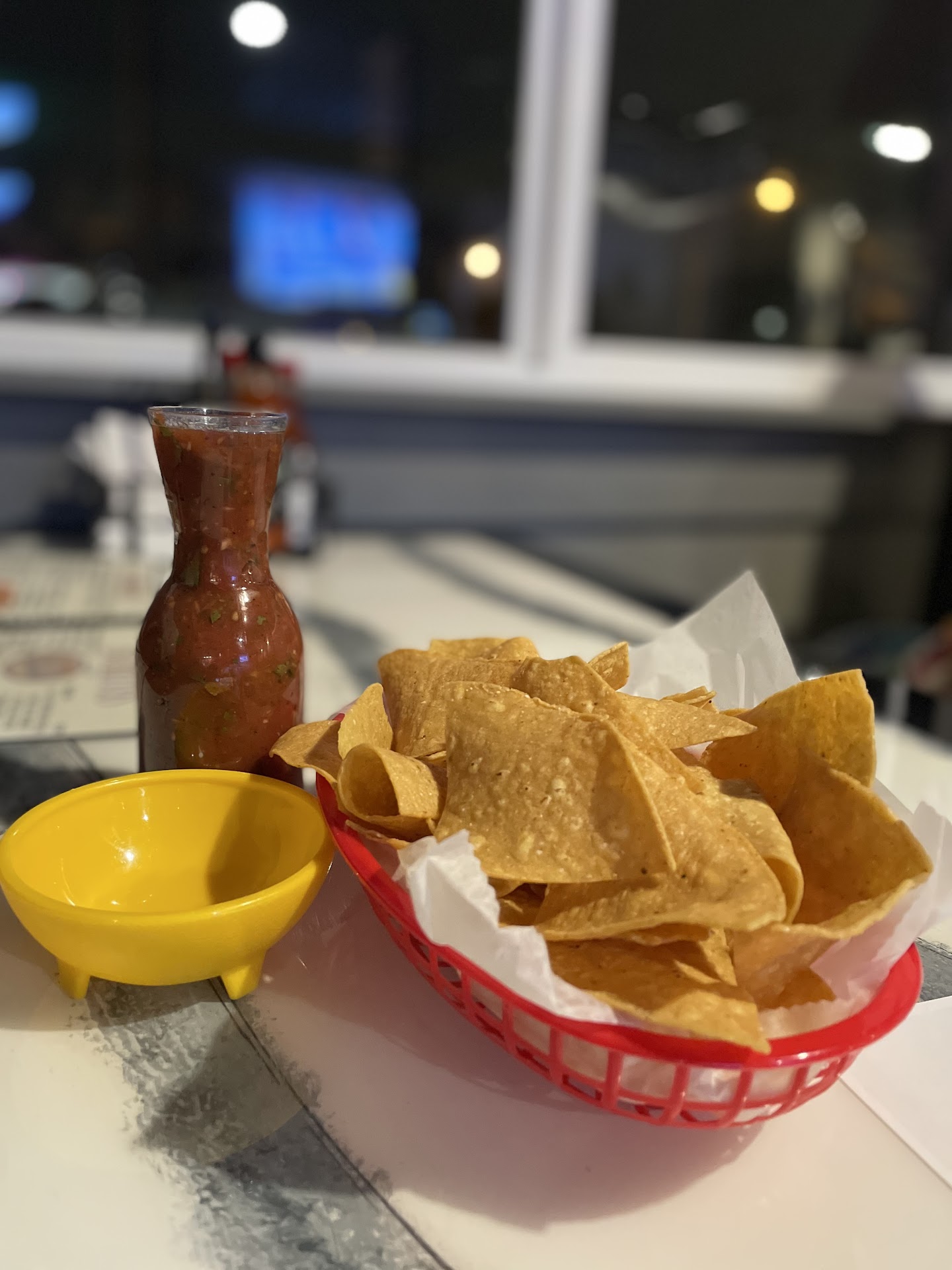 Currently on a mission to find the best chips and salsa, lime margarita and steak taco, which are being graded on a scale of 1-5. When my child is with they grade the chicken tacos. This is the 18 stop on our taco tour.