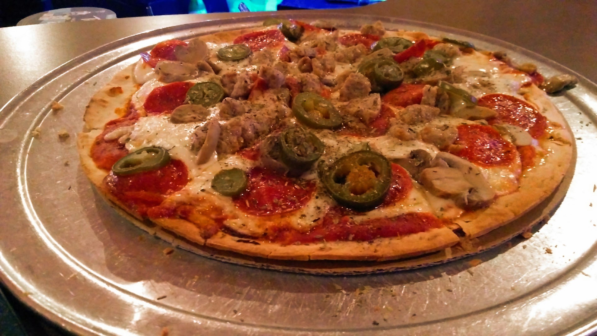 Is the pizza good? It's good for what it's going for. I gone with pepperoni, sausage, mushrooms and jalapenos for toppings. The sausage is of good size and a spicy sausage like you would want. Mushrooms are a nice touch. Jalapenos are what you would expect since they are the standard pickled jalapenos. The least appealing of toppings I had was the pepperoni which they should look to find a brand that would have that ideal flavor. The sauce is alright too. The mozzarella cheese will be the winner because it is added on by hand and has that beautiful stringiness that would make any Wisconsinite orgasm!