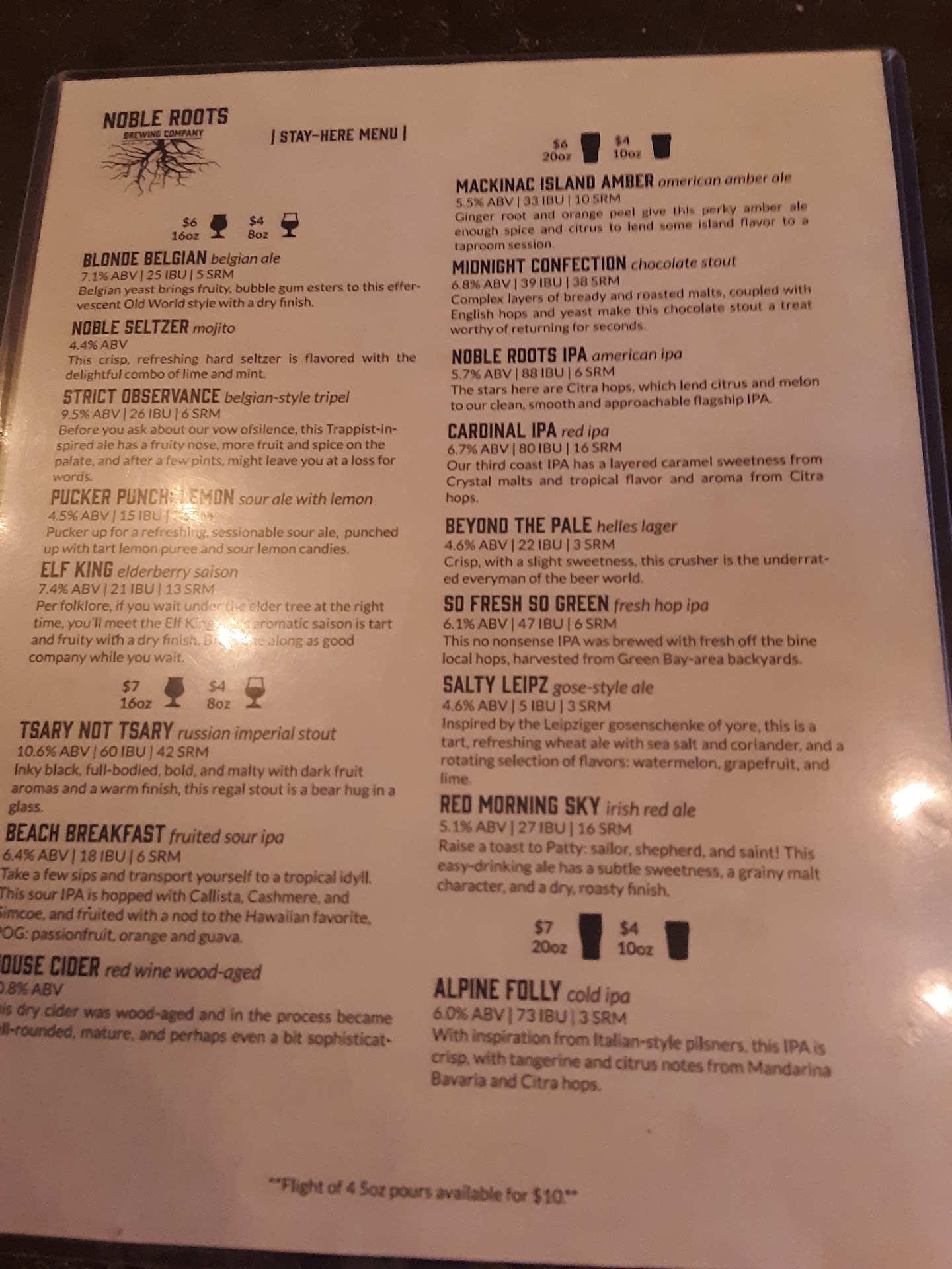 Read moreThis place is a must stop for any beer enthusiast and anyone considering becoming a craft beer lover. Absolutely the best brewery in Green Bay at least, if not all of Wisconsin. Highly recommended to everyone and anyone. LOVE NOBLE ROOTS. One of the highest compliments I can offer Alex (head brewmaster) is that every beer he produces represents the style well. Every other week they release a new small batch "Garage Series" that provides a new tap to try every time I go. The entire team at Noble Roots delivers wonderful cheerful service and take pride in their excellent brewery, and...