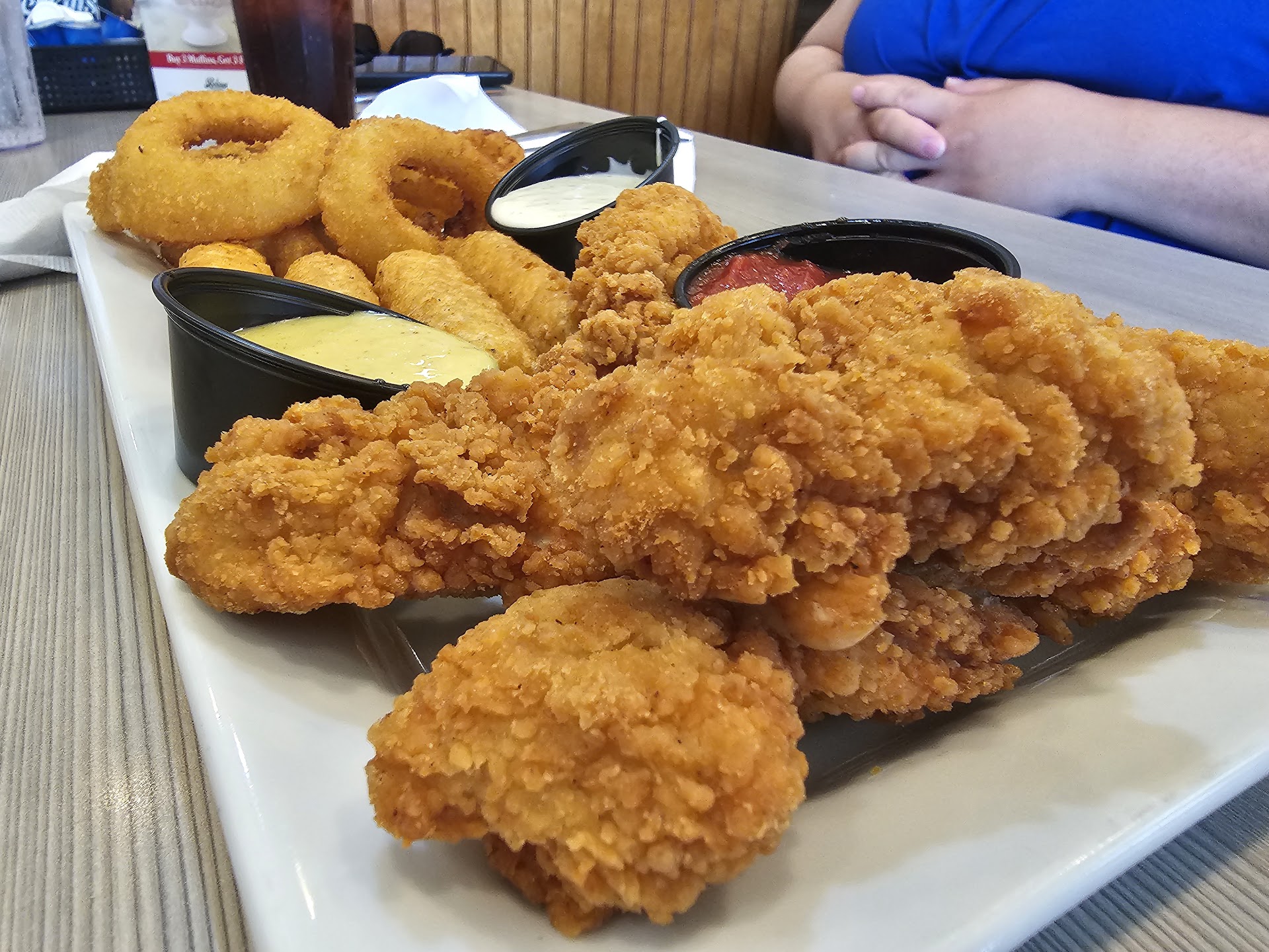 Read moreThis is the firt tine I walked out. We were seated next to the far wall left hand sude facing E Mason, third booth from the end . We were given our menu's and asked if we wanted a beverage or just water. I thought just water huh. We got coffee and it started Ithe cream. I was with my friend...she says there was an odor....and then she says...hmmm Is the creamer supposed to have chunks. I am like ? I smell an odor....it smells like a personal hygenie swear odor. I said..likel old grease and then some. She said no. I almost (lost is right there). Ok..we asked for extra time to order. Was left a little too long. Got a new coffee and fresh cream..cold. Their expiration dates on the creamer. Use them people! And on a busy Saturday to boot. We were annoyed but forgiving. We saw 6 booths come and go.....eating there food mind you. My friend said lets go and pay for coffee and go. As we go to pay..our coffee waitress asked if we wanted our food to go? My friend said no like what food....the waitress said , yes. Sorry..was given a hairy eyball from my friend..no just pay for the coffee. She said sorry....But gross....do you know they whear black hoodies and most over their T shirts. Wiped hands on shirt and no hamper. Oh ya and the bathroom was disgusting....not on my watch.? Will...