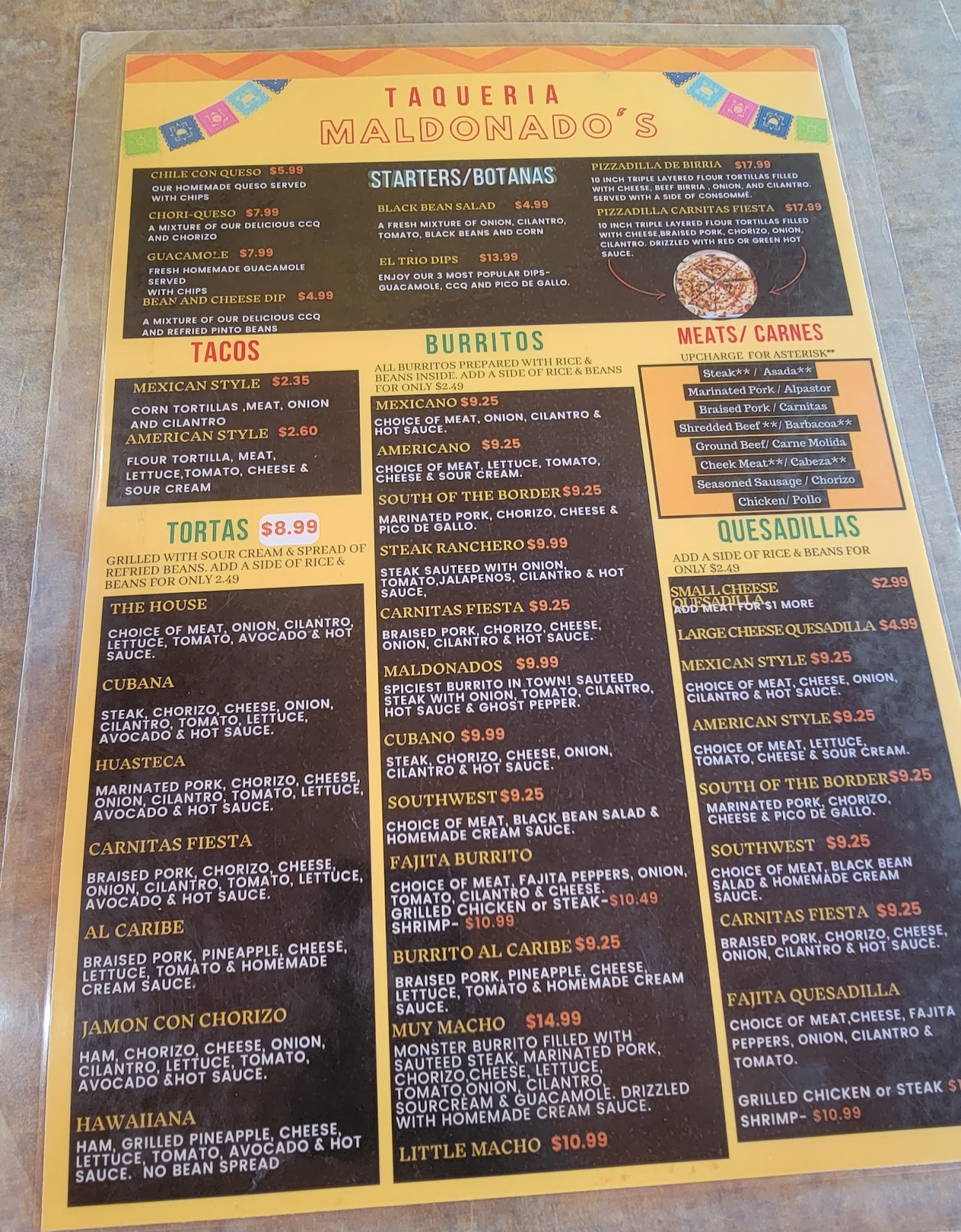 Ā Ā Ā Read moreTaqueria Maldonados is a good place to have a good meal. The chips and salsa were good. I wasn't a big fan of the shredded beef in the enchiladas but they had a good flavor. All he plates were ordered had a great portion of food. The shrimp didn't have much seasoning so the taste was neutral with the fajitas. No fountain soda or alluminum can sodas are served, only glass drinks. I normally enjoy my soda with ice, but the great tasting rootbeer made up for that. The staff was very friendly. They speak bilingual. They had some great Mexican music playing in the kitchen. I enjoyed the music way more than what was on the television. The establishment is small, but there're tables for 4 down the middle and tables for 2 on the sides of the dining area. I'm glad we visited and look forward to trying the other foods. Especially the...