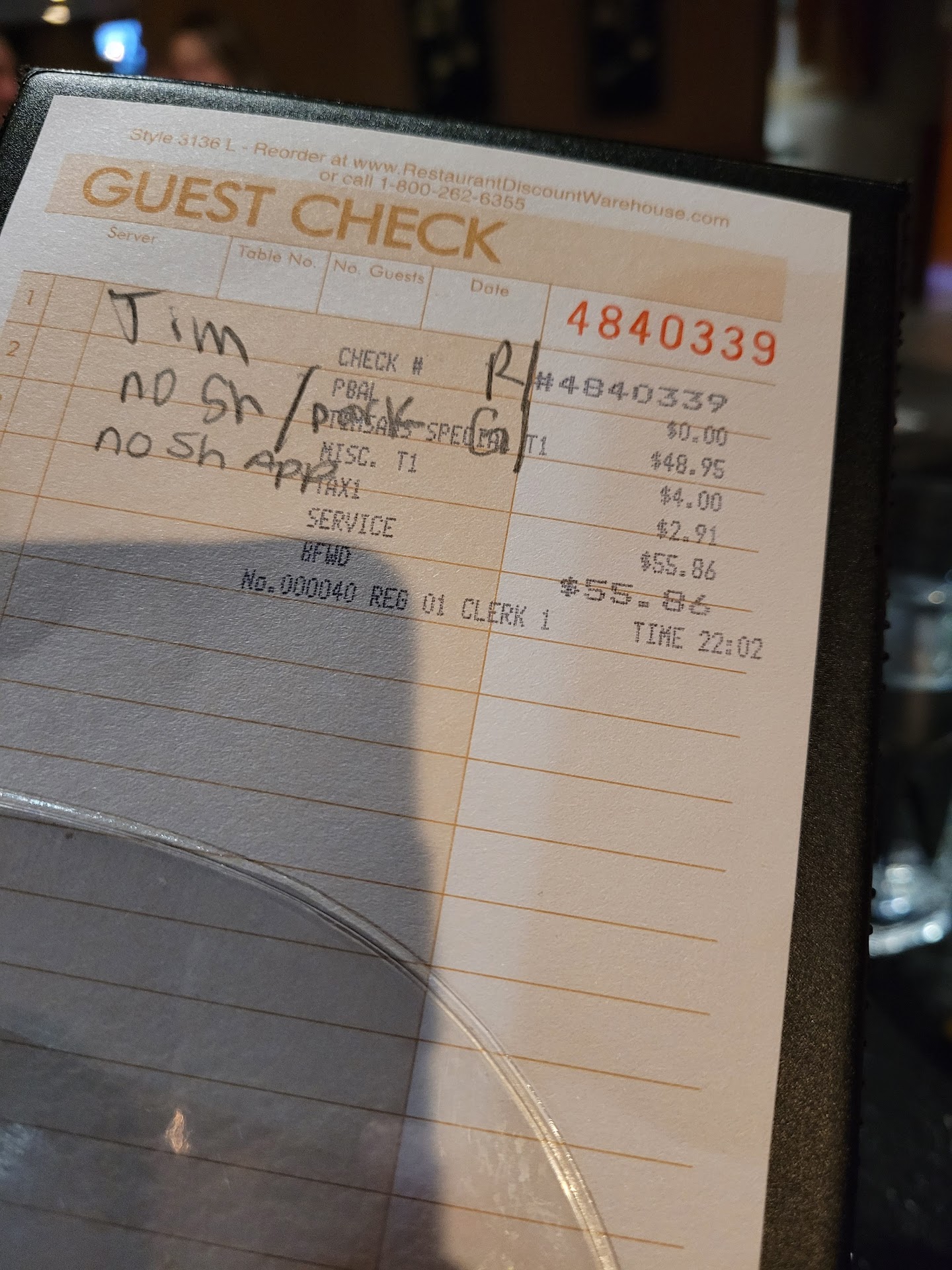 Read moreToo salty. The âchefâ was sharing his views during our meal about how he was married twice and that nobody should be able to get married unless they each pay 5,000 (in front of my husband and I and our kids). He was talking about how he wants to get hammered but at work heâs too busy to get hammered. He also talked about how he likes to parent other peopleâs kids, including mine, and acted like he was so smart. Youâre not, and I doubt he has kids of his own, itâs usually people who never had kids that say that. He also insulted my brother because he only ordered appetizers. This chef seemed like a know it all. Purposely made our dinner unpleasant talking about subjects that are not honorable. Drunkenness, divorce, parenting others kids because the parents arenât doing good enough. Also, they put an automatic 20% tip on the bill. And they charge $8 for you to share a plate with...