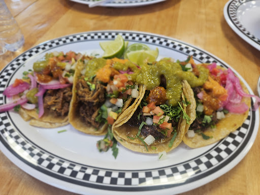 We recently visited this restaurant and really enjoyed it. The service is so welcoming and very friendly. We order a few tacos.. cabeza, lengua, asada and shrimp. Also got a burrito which was massive but well made. They have a sauce bar with a few fresh veggies that pairs well with your food. Personally enjoy the sauces but just wish they were a little more spicy.. we also had two drinks. One tamarindo and one mango which both were delicious. When it came to pricing at first glance it seems expensive but when you get your food it make sense why it’s priced that way.. like the 3 taco plate comes with a side of rice and bean but also includes a soda which seems like a great deal. They don’t serve you chips and salsa like other restaurants but to us we didn’t mind because by the time we got to sit down the food was coming out already. Overall they are really good and I hope their business...