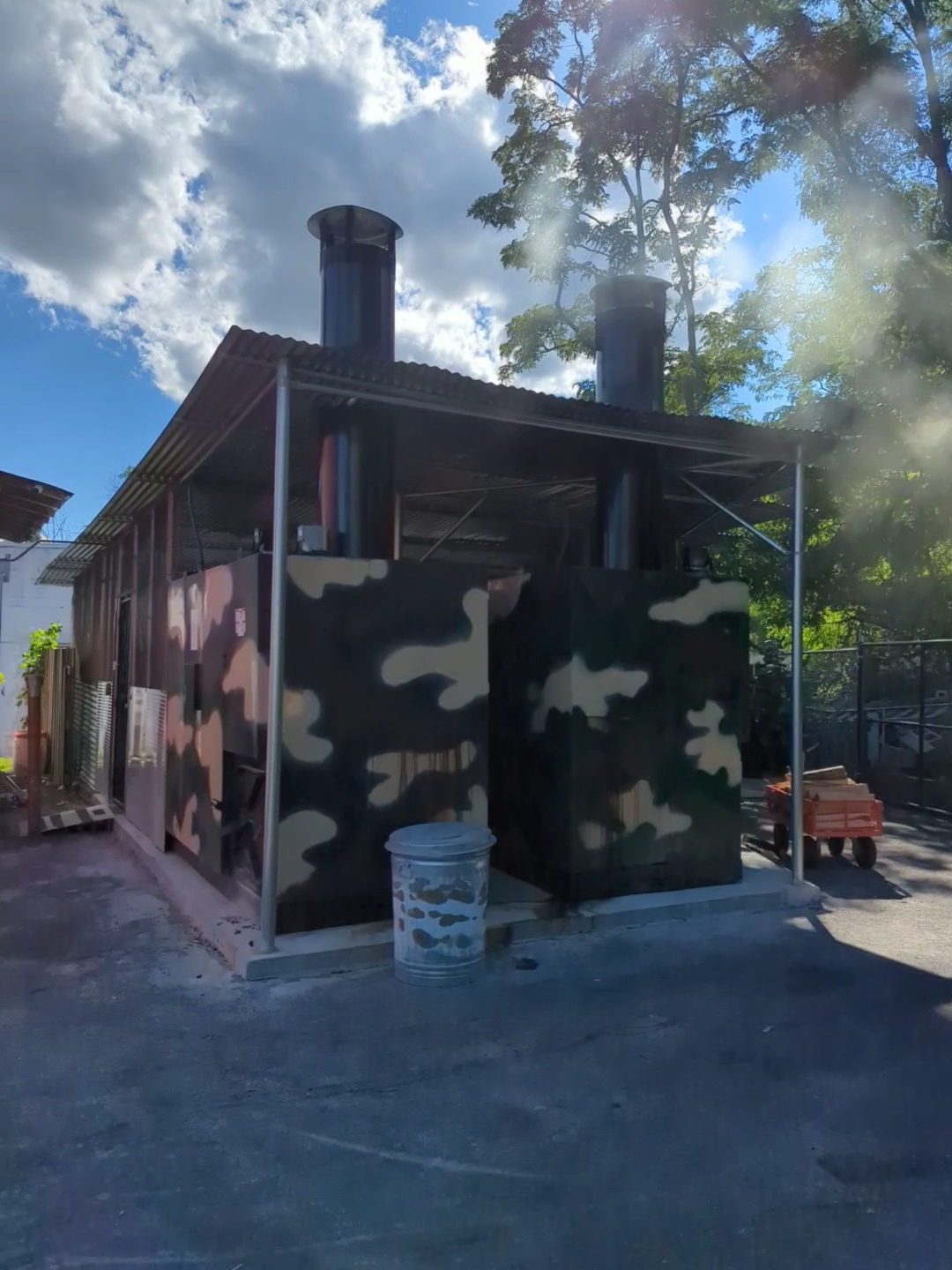 Around back there is a small smoker house puffing away. So if you were wondering I guess they smoke...