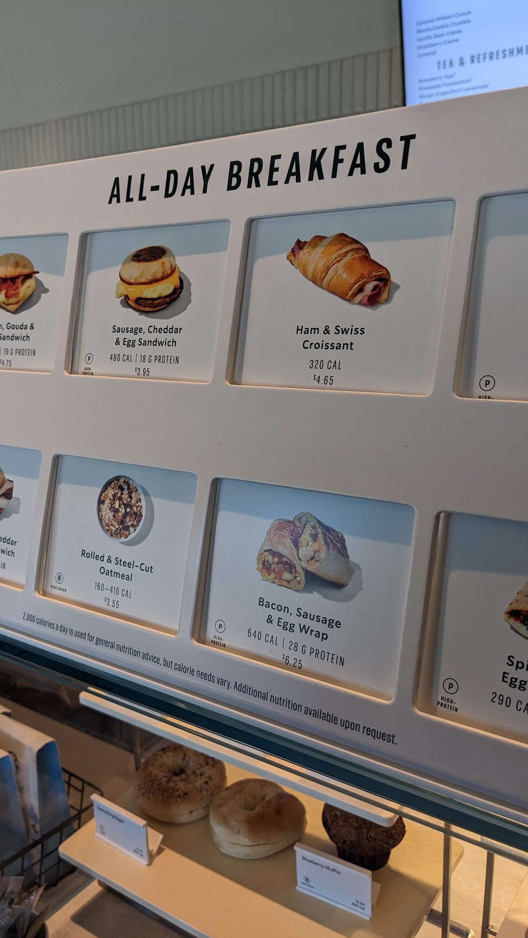 One think I noticed on my last visit, this Starbucks has an 'all day breakfast' menu that is right on top of the sandwich/drink case.