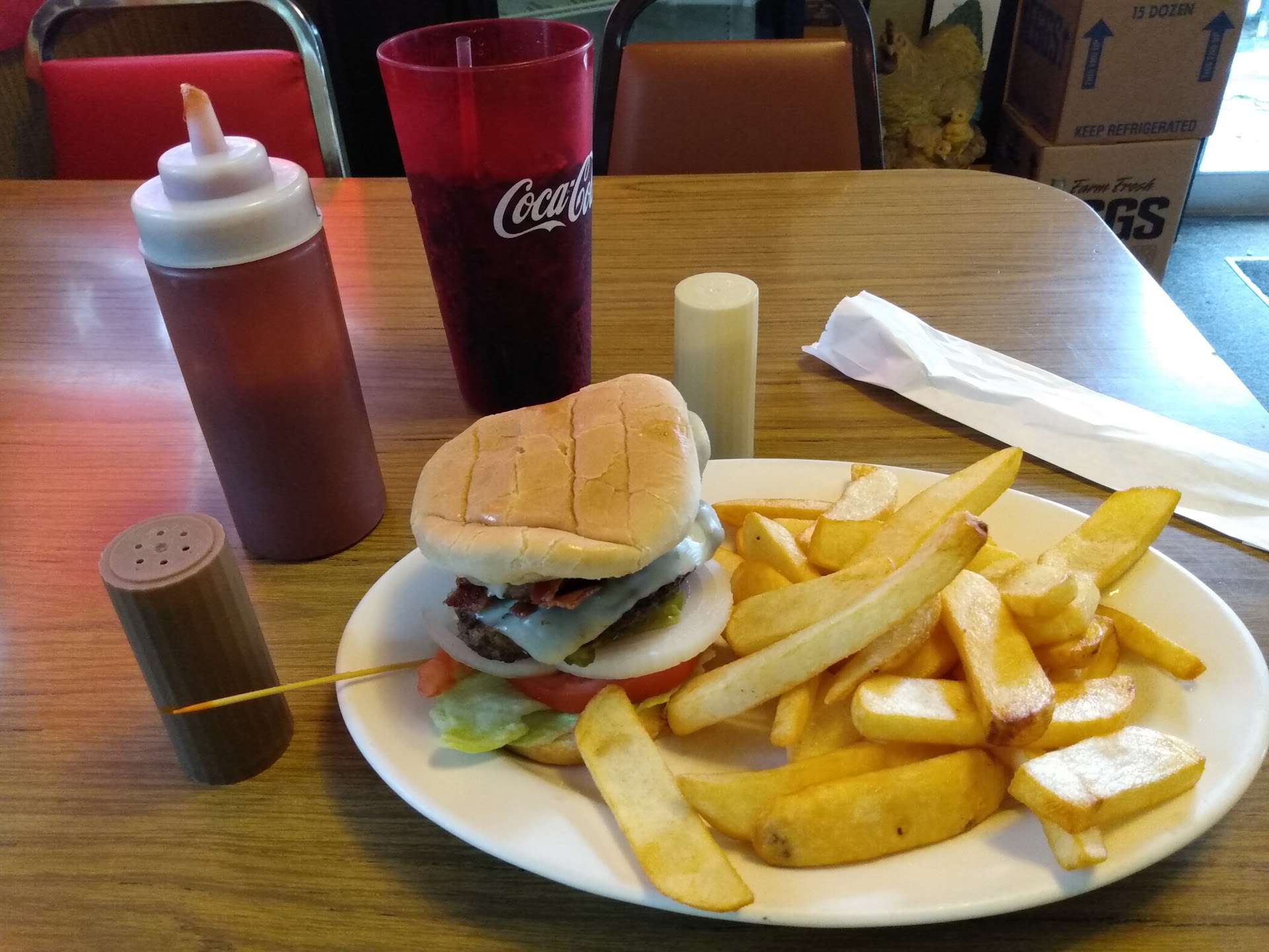 Read moreStopped into this small diner as the parking lot was packed (usually a good sign!). Ordered burgers and the catfish special. We didn't allow ourselves enough time to stay and eat so took our food to-go. The catfish was AMAZING as were the burgers! We will stop in again next time!