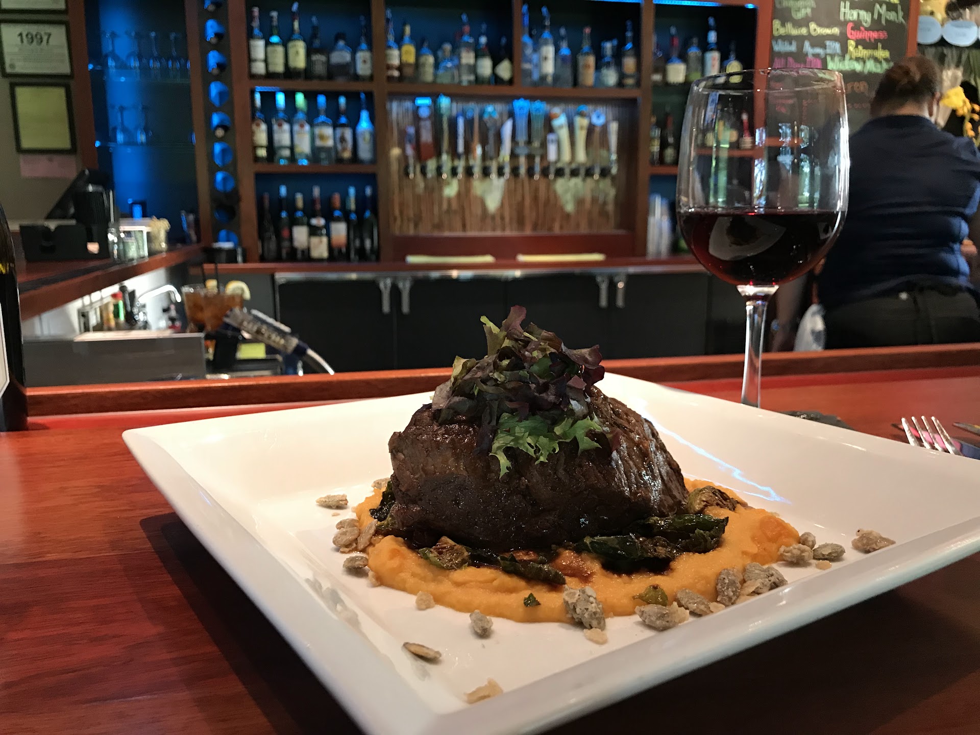 The menu of an excellent restaurant with the execution of an applebees. The meal started off great with some delicious lobster bisque and a corn chowder so I was very excited to taste my fillet oscar with bearnaise sauce but when the entrees arrived the illusion portrayed by their menu was dispelled by they're lack of ability to properly execute their own dishes. The bearnaise was little more than melted butter and while my potatoes were underseasoned everything was cooked properly. The pub steaks zip sauce was overly salty. The ribs on the other hand were fantastic, tender and cooked to perfection. The slaw and squash that accompanied the ribs were also delicious and done perfectly. The shining star of the meal was the lava cake which was perfectly crisp on the outside and melty on the inside, the bread pudding was also delicious however the creme brulee was noticeably missing the brulee, which is truly unacceptable considering the relative ease of melting the sugar and the fact that the name literally means burnt. Ultimately should you venture to Bradley's for dinner stick with the bar food, burgers and ribs and shy away from the more...