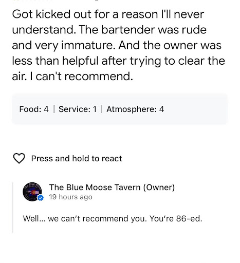 Read moreOver memorial weekend we came in with our two kids and sat outside. (No wait to be seated sign). We waited for 15 minutes and no one came to our table. Mind you the bar tender looked at us a couple of times during this process. Overheard her telling someone at the bar I smoked a bowl before coming into work and feel “so good”. I went inside to ask if someone could wait on and us and found a waitress who was chatting in the corner with the one table of people that were inside. She ignored me twice standing there. Another couple who were standing at a table outside the bar asked if they could order and she rudely told them we’ll go find a table and I’ll see you. Finally she told me she would be with us shortly. I went outside and we sat for another ten minutes and she never came out so we left. The couple also left as well and another two guys who were waiting to be seen outside...
