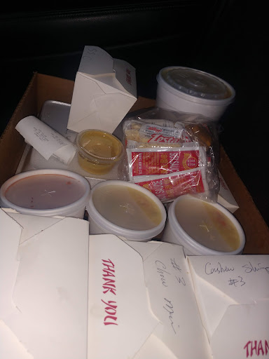 The service was great. We stopped last minute to stay the night on our way back east. We checked in just after 8:20pm but wasn't able to place the order until 8:40. They close at 9:00. They took our order and had it ready for us pretty quick. They were nice, but that is where the good part ends and the really bad part begins. We ordered General Tsoa's with white rice and it came with soup, so I got the egg drop. My husband got Mongolian Beef with white rice and hot and sour soup. The soups were not good. The egg drop had Celery and carrots in it. The hot and sour was more solid ingredients and barely any broth. The flavor on both was not good at all. The Mongolian Beef was awful. There was a lot of meat which normally is good, but the flavor was very lacking the sauce was awful and there was like every vegetable they had in the restaurant in it. The General Tsoa's was not General Tsoa's. I know that it was supposed to be that because they wrote it on the food container. What it was was what kind of vaguely tasted like orange chicken with sesame seeds on it. It left a weird after taste. For those of you that see this review, know that it was right as they were closing, so that could have had something to do with it. I wish that I could have left a positive review, but the food didn't deserve anything higher. Service,...