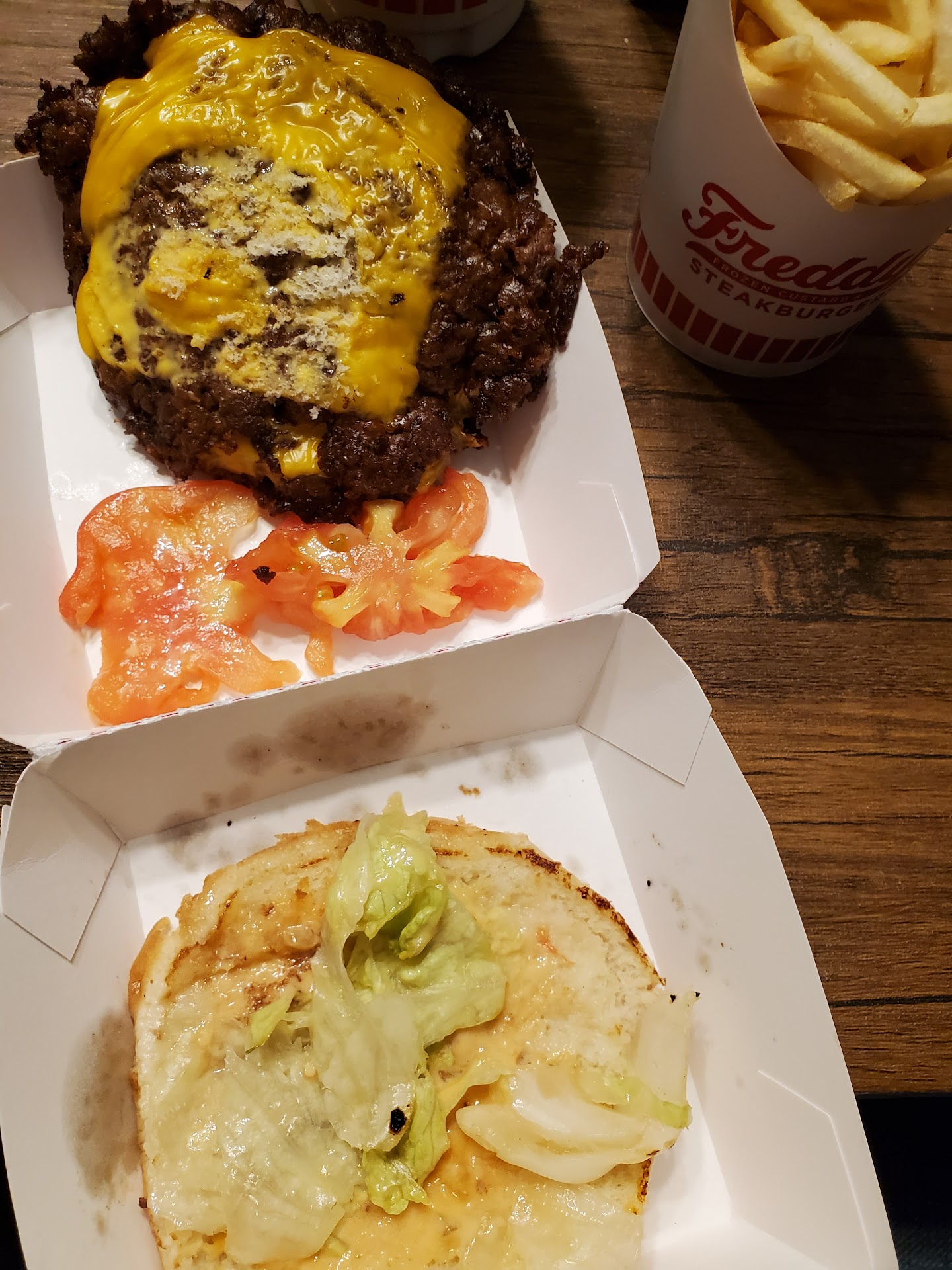 Read moreI went to my first Freddy's in Colorado, and loved it! I didn't realize there was a local restaurant, so wanted to have a similar experience when I found one. Our experience went from bad to worse right from the beginning. We ordered a combo meal, but the cashier rang up the order for over $2 more per meal then what the menu stated! When I asked why it wasn't the pricing on the menu board, all I got was "that price is wrong". No explanation or any effort to make it right! Then they proceeded to screw up both of our orders, placing items on our food that we clearly did not order! There were no condiments available (and it was like pulling teeth to ask for anything). The worse part, there were only a hand full of customers in the place. They had zero napkins, or so we were told. They gave us paper towels from the restroom! The napkins showed up after the ex manager came in to visit, whom created a huge disruption in our dining experience (loud obnoxious, non compliant). I would think an ex manager would know the rules regarding facial coverings, yet she was allowed in (and served) by this staff without a word about not wearing one! I guess that is standard practice, since only 50% of the staff knew how to properly wear them anyway. The food was average at best (after removing the unwanted items), the customer service was poor, the dining expertise was terrible ... and way over priced! Why put prices on a menu board that you aren't going to honor??? My advise ... steer clear of this place unless you want over charged and...