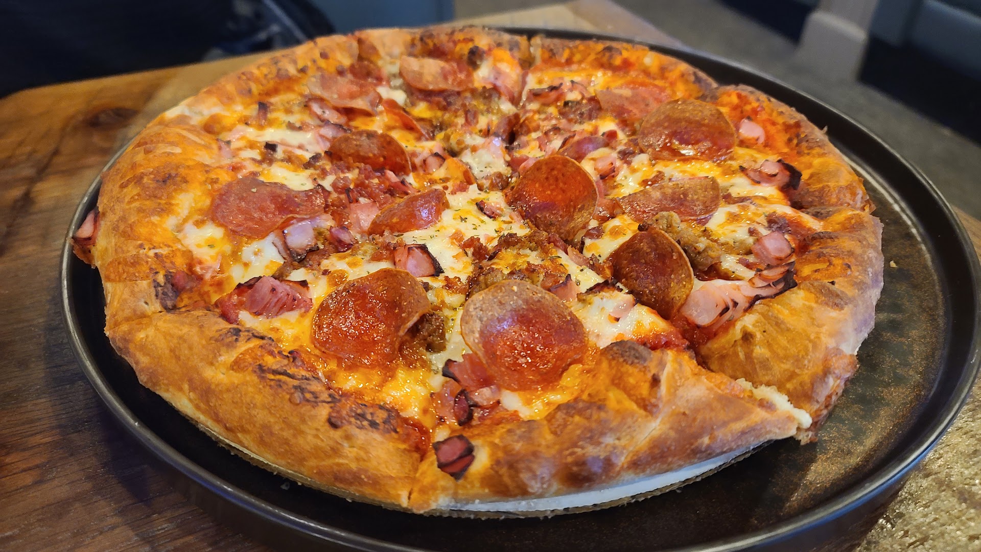 Our server was polite and friendly but seeing as she looked really young I'm guessing she doesn't have the experience to handle certain situations. For example I asked her what sizes their pizzas were. She told me they were small and large. I clarified that I was asking for size in inches and she just told me how many slices each had. I do feel like a more experienced server would have said something like...I'm not sure but I can go ask for you. Then after I got my pizza it wasn't cut all the way through and I know she saw me cutting it better with the knife that comes with the silverware set but didn't stop and asked if I needed it cut better.