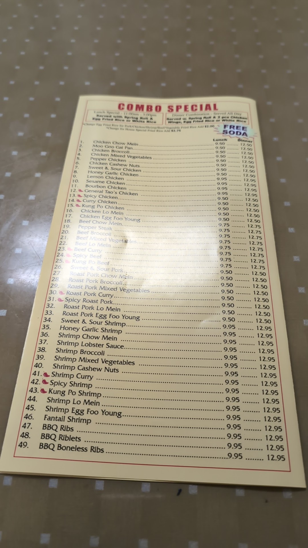 Read moreBest value of all Chinese food in the area. Their dishes are packed with large pieces of the primary ingredients. As an example Chicken Chow Mein has huge slices of chicken. Pork Lo Mein has not shreds of pork but huge sliced of pork and lots of it. Their soups are delicious especially their house won ton soup. But the best value is their combination dinners. Huge portions of your meal choice plus lots of fried rice but also spring roll and also 2 piece large fried chicken wings AND a soda for less money than any other Chinese restaurant. More food in a combo that will leave you overfilled or enough for 2-meals. I stop at least once a week now for if nothing else, just their great soups! You won't be...