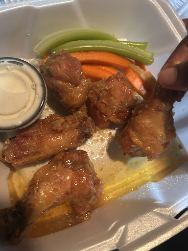 The food was phenomenal — the fish and chips were perfectly crispy and delicious, and the buffalo chicken salad was unreal (big enough for two!).
