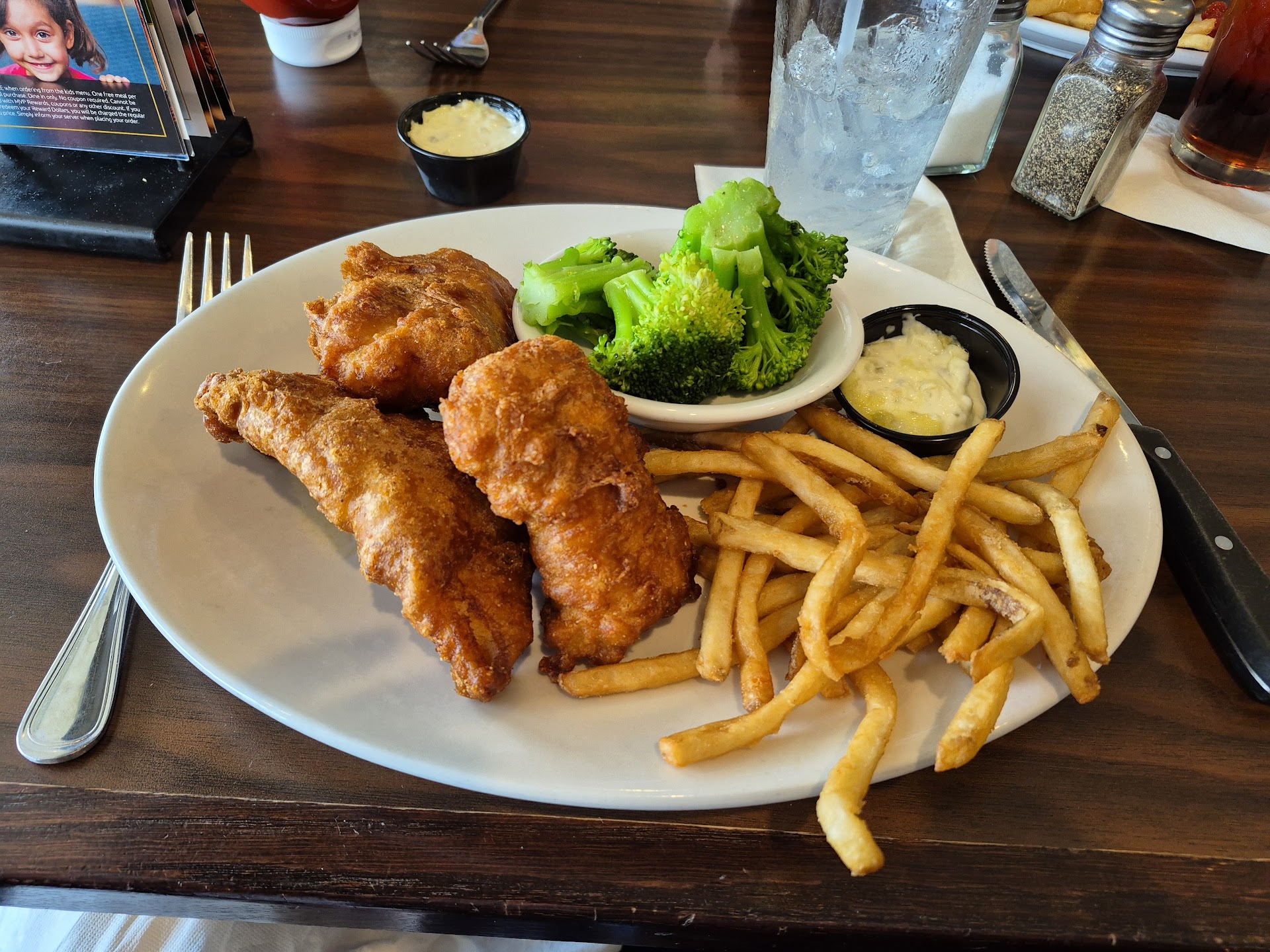 We took a friend here for a birthday lunch as she wanted their Cod fish and chips. Hubby and I aren't fond of sports bars/restaurants so entered this venture with trepidation.