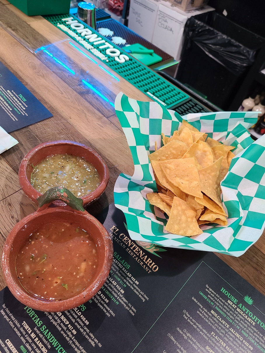 As soon as you sit they bring you tortilla chips with a couple of sauces, which were a little bland to be honest. The margarita was also just ok, but to be fair, I havenât found a place yet that makes great margaritas.