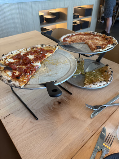 Read moreOur first time trying this place it was an interesting Sunday night. Lots of families, loud noise, and yelling kids from all the other tables. we were a tablen of 12, and don't get me wrong, we were loud as well. We started with three of the salads. An arugula, a Ceasar, and a Chopped Salad. The Chopped could have used a little more meat but large enough for all of us to share the 3 salads. We followed with all of the 4 On Toast options as appetizers. and an order of the meatballs to try. They were good, and it went well with the sauce. Drinks are more artisan tea boxes with no refills, and the soads were served in cans. This was followed by 4 pizza pies and three orders of their special wings. The wings were good. Lots of heat with the side of calabrian chili pepper. I wish there were a few more on the plate, but there were about 8 per serving of wings. The side of the aioli was good but not for everyone at the table.. The brick oven runs at 660 degrees and rotates with up to t pies at a time. My daughter explained the pizza as naan like dough. The soft crust was nice. The different sauces were very tasty. I liked the hot honey as it was the most different of the pies. Now that the table of 20 has left behind us. we can hear each other. We tried the chocolate chip sourdough cookie with vanilla gelato.