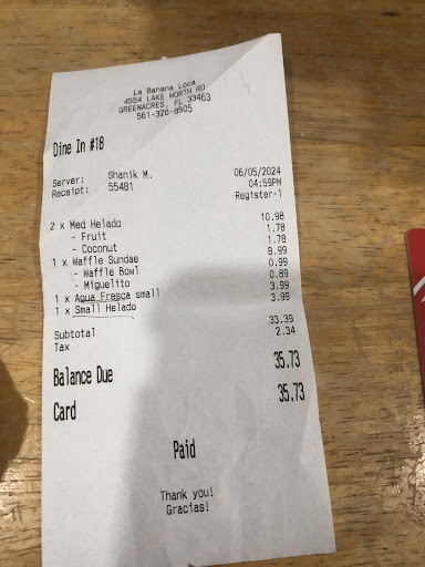 Read moreTodos los sabores de helado que ordenamos DELICIOSOS! EL servicio TERRIBLEMENTE MALO! La Niña que atendía no quería estar allá y Nos hizo sentir que tenía rabia de que nosotros estuviéramos allá. Pedí un waffle y me dijo q se demoraba entre 20 y 25 minutos , creo q con la intención de q cambiara mi orden por algo q ya estuviera listo, ( finalmente se demoro aprox 10 minutos) . El recibo de cobro era confuso y pedí q me explicara lo q se me cobraba. Lo que la irritó más . Empezó a señalar con lápiz los productos se habían pedido y q claramente hacían MATCH con la descripción. Pedí q me dijera q era los cobros adicionales de el waffle Sunday. Y me dijo q así lo cobraban q todo lo q el producto traía era a parte pero no me supo explicar q era , es decir pedí un waffle Sunday q trae helado, fruta y wiped cream (Como descripción del producto) pero la fruta , el helado y el “Miguelito” (que aún no se q es) se lo cobran a parte. Después de ella revisar la factura se dio cuenta q había un sobre cobro de dos productos a lo q me dijo q cogiera algo de 4 dólares para q ya quedara bien. Yo ya no quería nada más y pedí la devolución a mi tarjeta. Muy enojada y con mala actitud me hizo la devolución en cash por q su sistema no devolvía a la tarjeta. Definitivamente un lugar de...