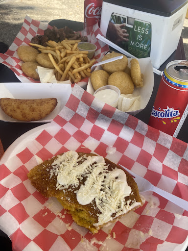 Prices are ridiculous. I was there with my partner. We had two waters, 1 cachapa and 1 patacon; bill was over $50 with tip. The young man cooking was very pleasant but food took more than 25 minutes to prepare and we were only one of two couples there. This is a food truck. They need to get food out faster and at a reasonable price. The food was nothing to complain about and good portions. But anyone who is going to a food truck is not expecting a wait that long and a bill...