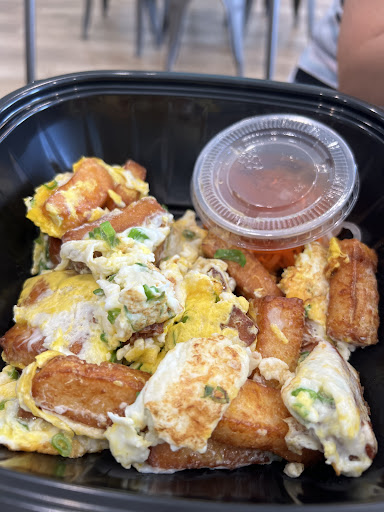 All the food came in disposable bowls. They also provided disposable utensils and chopsticks. No dine in silverware or large soup spoon for the pho which was fine. We also enjoyed that while we were ordering, she offered us a free milk tea for purchasing X amount of food. She didn't let us know that it did not come with boba but once we received it, she was kind enough to add boba for free.