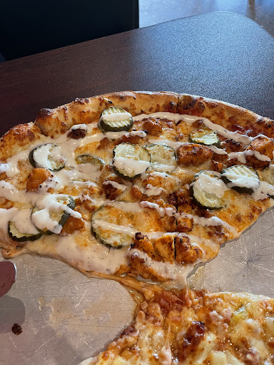Read moreSuch a cool little place and great concept but they’ve got some things to work on. No plates when your pizza is brought out and this pizza is nicely cheesed up so you really need a plate. I paid for double pepperoni and got what appeared to be a regular portion. Also requested a swirl of pesto on top - that never made it. The onions are diced up like what you get at Burger King. No red onions offered - only white. Wires all over the place on the wall - wish they had taken more care to bring the wall out just a bit to hide all the electrical hardware and wires. The pizza is good but it’s nothing to write home about. The pretty blonde working the downstairs dining room needs some guest relations skills and training. Super cool concept for the restaurant as a whole and looking forward to seeing where it goes in the future. (Once the budget affords it, I would hire an advisor to help you take it to the next level - this concept could really take off). LOVE the open air space inside with the garage door concept (that industrial fan overhead needs to be bigger and more industrial looking). Also LOVE the creative use of the upstairs space as well as the patio space outside. I’d be careful using icons on the menu that are registered trademarks for certain companies. You never know who knows who that might stop in to see what the place is all about...(Mellow Mushroom pays for the use of icons used within...
